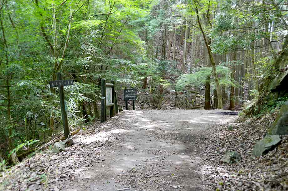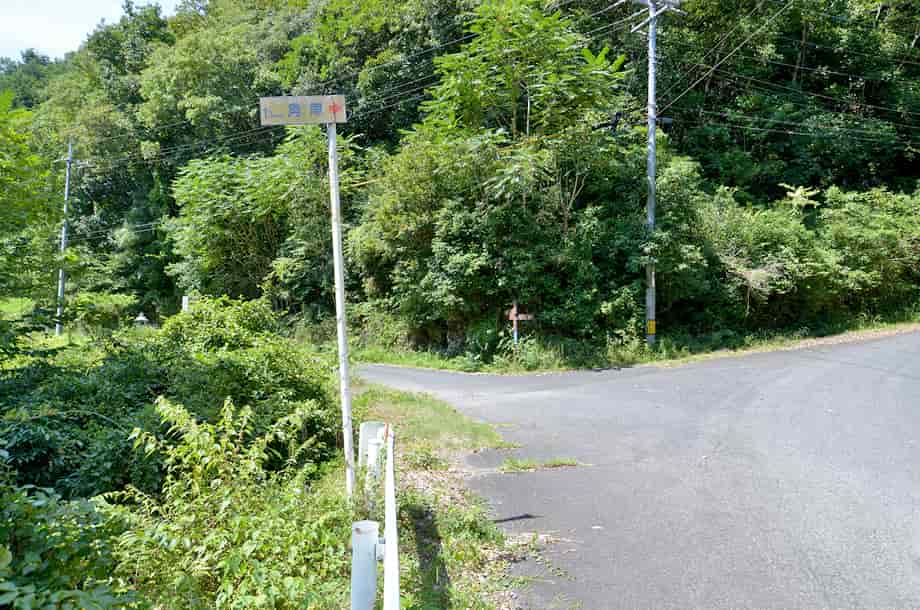 | ▲白水の滝への分岐・画面左へ進む (46号線からだと画面右から来ることになる) |