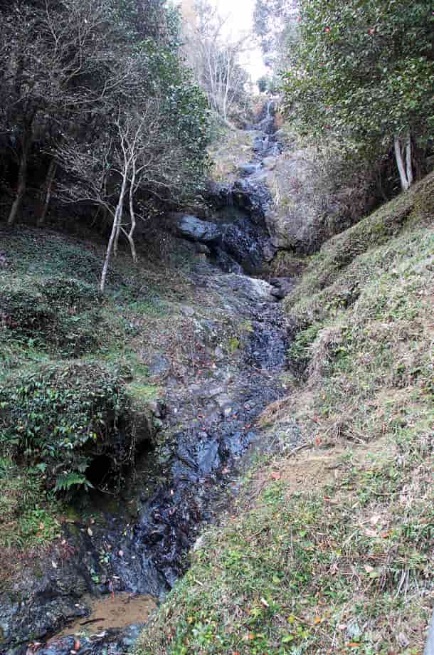 岡山市にある「木庭の滝」は、東区瀬戸町にある瀬戸町総合運動森林公園の中に流れ落ちている。 落差25m程の段瀑とされているが、水は幾段にもなって流れ落ちていて、おもしろい動きが感じられる。 また、滝の前には小橋が掛けられているが、ここから見ると落差は25mをかなり超えていて、更に大きな滝のように見える。 木庭の滝は奥行きが感じられる滝でもあり、水が流れ落ちる様子にも変化があって味わいがある。 この時の流れは細かったようだが、木庭の滝は普段から水量は少ないとも言われている。 これは、周辺の山が、それほど高くないためだろうか。 しかし、水量が多ければ、落差と奥行きがあるだけに、見応えする力強い様子を現わすのだろう。 ところで「木庭の滝」とは良い名前だが、名前から察すると、付近には耕作地があると思うのだが、この時はその様な切畑などを確認できなかった。 多分、木材置き場などに利用されていた「木庭」なのだろうが、かつては、この滝の水を利用して作物を育てていたのかもしれず、現在も、周辺にはその様な耕作地があるのかもしれないと思ったりする。 木庭の滝への交通・アクセス さて、木庭の滝へは瀬戸町総合運動森林公園を目指すことになるが、自動車の場合、山陽自動車道・山陽インターからだと、インターを降りた先の交差点を右折し、県道37号線を「西大寺・瀬戸」方面へ向かう。 しばらく進むと、県道221号線へ向かう「沖」の交差点があるので、この交差点を左折して「一日市」方面へ進む。 道なりに走って行くと、道路左に「← 森林公園」の案内標柱があるので、この分岐を左へ入る。 この案内標柱は小さいので分かりづらいが、分岐のやや手前の左側に「御崎神社」の石灯篭と鳥居があるので、それにも注意しておくとよい。 県道を左折してからの道は細くなるが、舗装もしてあるので特に問題はない。 少し進むと突き当りになるが、正面に「森林公園 →」の案内板が立てられているので、それに従って右へと進んで行く。 あとは道なりに走って行くと右への脇道があり、この分岐のところには「木庭の滝」のほか、よく目立つ「生活環境保全林案内図」も立てられている。 この案内図には「木庭の滝」も記されているので、参考にしておくとよい。 また、この分岐を右へ入ると、程なく道が分かれるようになるが、木庭の滝へは右の沢沿いの道を進んで行く。 この辺りまで、山陽インターから20分程で、自動車は付近の広くなっているところに駐車することができる。 あとは、沢沿いの遊歩道を進んで行くと程なく滝前で、「生活環境保全林案内図」のある分岐からでも400m程なので、5分程で滝前に着く。 滝前には、滝見台ともなる小橋が架けられていて、脇にはベンチも設置されているので、ゆっくりと時間を過ごすことができる。 |