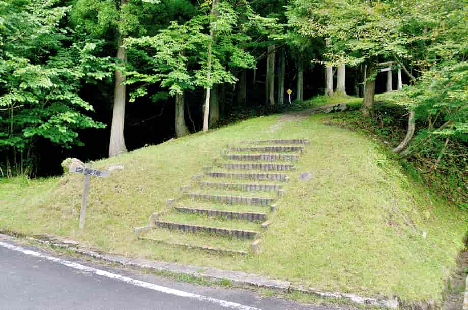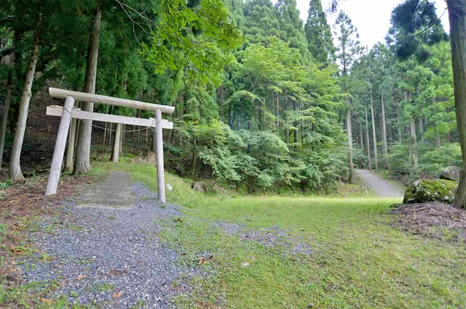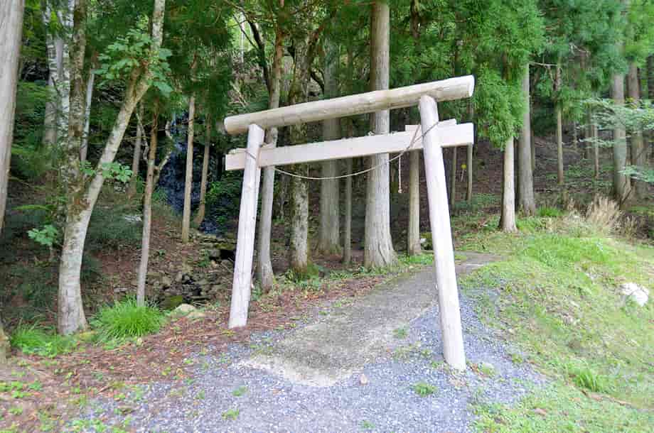 | ▲林道にある入り口 | ▲駐車場脇の鳥居・右の道は大滝へ続く |