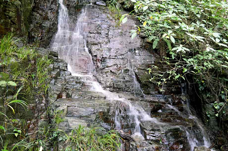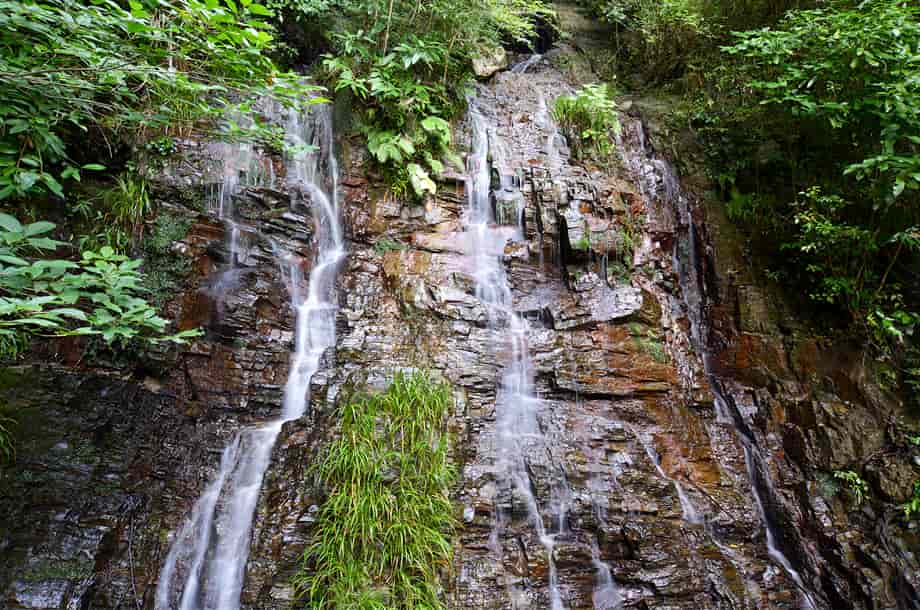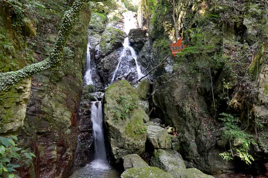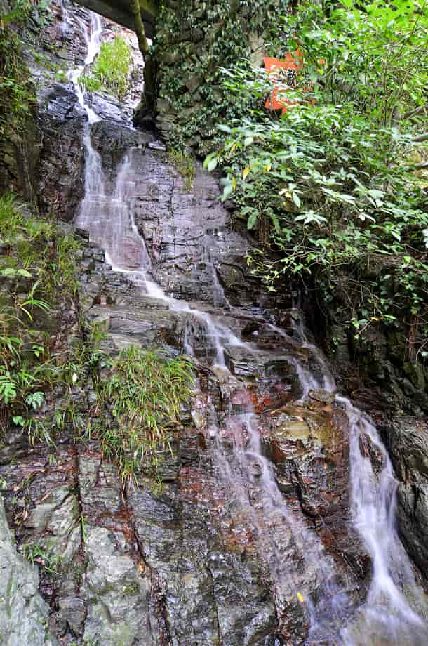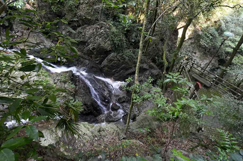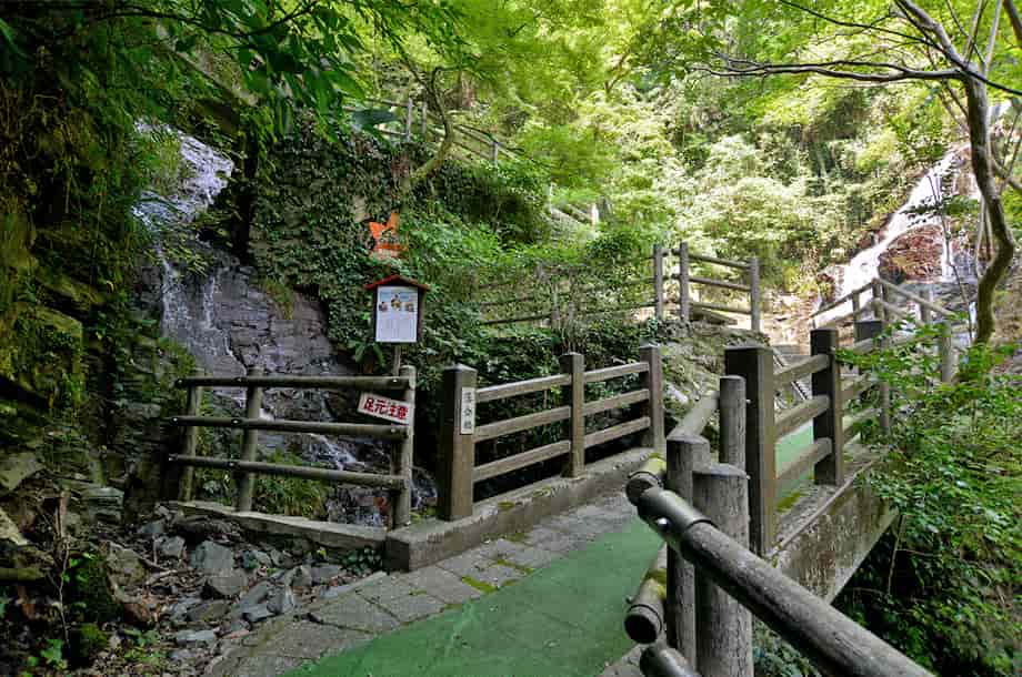 愛媛県大洲市にある「合歓の滝」は、白滝地区にある「白滝公園」の中に流れ落ちている。 公園内には幾つかの滝が流れ落ちていて、これらの滝は、総じて「白滝」と呼ばれている。 合歓の滝は、この白滝と呼ばれる滝の内のひとつで、遊歩道の途中にある「落合橋」の辺りから眺めることができる。 この橋の上から間近に見ることができるが、滝の中程には「来光橋」が架かっているので、全体の様子をはっきりと一望することは難しい。 落合橋の辺りから覗き上げるようにすれば上段部分の一部も見ることができるが、全体は段瀑のようになっている。 水が流れ落ちる岩肌には凹凸があるので、水の流れにも変化があり、水量が多いと見応えのする滝のようでもある。 また、落差は10m程のように思うが、滝からの下方部分はそのまま「落合の滝」をつくっている。 その辺りまでを含めると、落差はかなり大きいもので、間近に見ることもできるので、迫力も感じられる。 落合橋から少し行くと来光橋があるので、その辺りからだ合歓の滝の上方部分を正面に眺めることができる。 水の流れを見て見ると、大きな岩肌を幾筋かになって流れ落ちているので、水量が多いと、この岩を覆うほどに流れ落ちるのかもしれない。 合歓の滝への交通・アクセス さて、合歓の滝は白滝公園の中にあるが、白滝公園までの交通はそのページで紹介しているので、駐車場の奥から延びる遊歩道を歩いて行くと、階段を上がったところに落合橋がある。 合歓の滝の下段部分は、この橋の正面から間近に見える。 また、そのまま遊歩道を進んで行くと、すぐに「来光橋」を渡ることになるが、この橋からだと上段部分をよく見ることができる。 ここまで、落合の滝からだと2~3分程で、入り口からでも10分もあれば滝前に着く。 遊歩道はよく整備されていて歩きやすいが、下流側の見返り橋からは上りの階段が続くので、ゆっくりと上がってくればよい。 ところで、落合橋の先を見ると、滝見台ともなる踊り場がある。 ここからの正面に「雌滝」が流れ落ちているのが目に入るが、その光景は素晴らしく、印象に残る。 また、落合橋の手前辺りからだと、落合の滝の落ち口となる様子を見ることができる。 その辺りからだと、この合歓の滝からの流れと、雌滝の流れが別の流れであることもよく分かる。 |