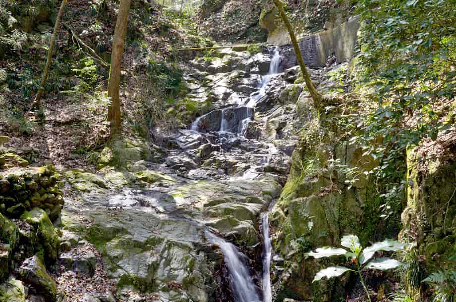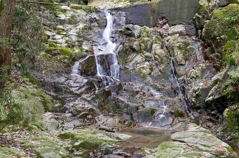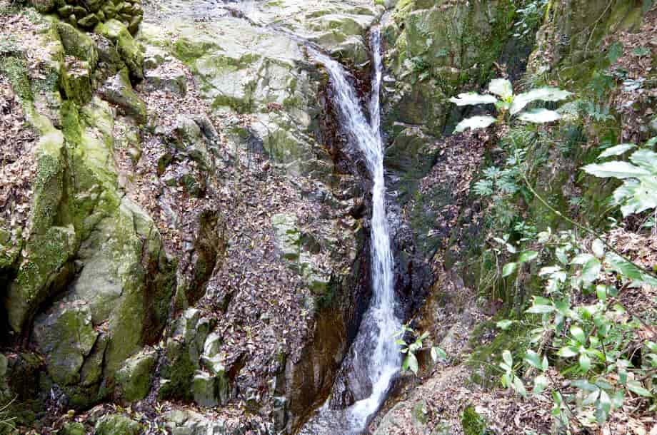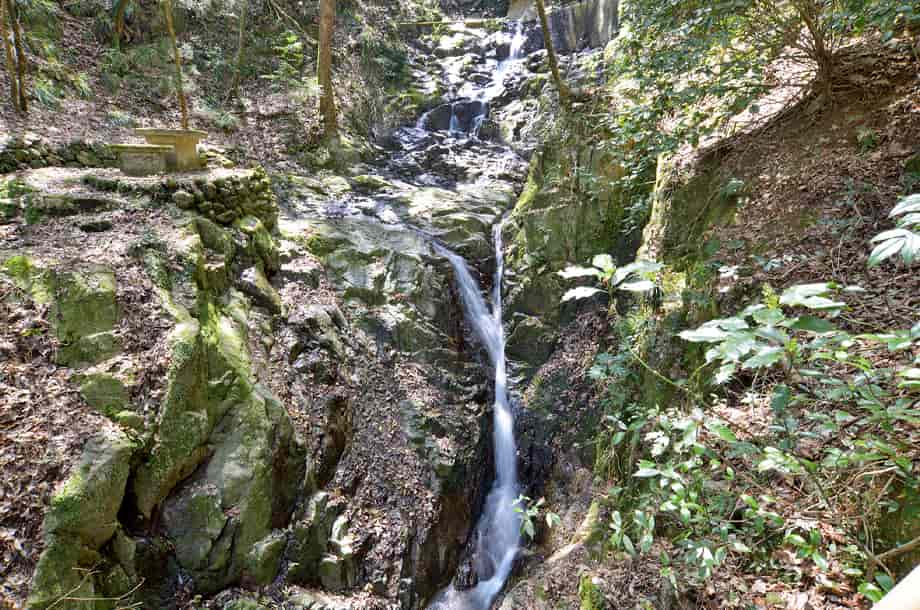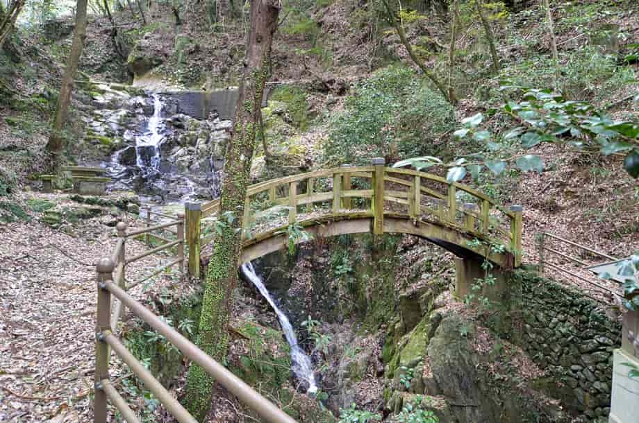香川県高松市塩江町にある「白桜(しらおう)の滝」は、安原上東地区を流れる香東川の枝沢に流れ落ちている。 落差は15m程で、全体は二段の段瀑になっているが、上段部と下段部の様子が違っていておもしろい。 上段部は斜瀑のようだが、水は凹凸のある岩肌を流れ落ちているので、流れに変化がある。 下段部の流れは、幾筋にもなって流れ落ちている上段部に比べると直線的たが、落ち口辺りはふた筋になっているので、これも味わいがある。 白桜の滝は大きい滝ではないが、全体は広々とした感じを受け、水量があれば、見応えする滝のように見える。 しかし、滝の落ち口辺りは堰堤のように造成されてしまっていて、これは残念ではある。 ところで、この白桜の滝がある周辺は「塩江温泉」としてよく知られていて、道の駅などもつくられている。 この温泉は奈良時代の僧・行基によって開かれたと言われていて、道の駅周辺には「行基の湯」なども整備されていて、近くには温泉旅館なども何軒か見られる。 白桜の滝周りも遊歩道が整備されていて、休憩所なども設置されている。 かつては、この滝も塩江温泉の名所になっていただろうから、遊歩道などもその頃に整備されたのだろう。 滝上の堰堤も随分古いようなので、遊歩道と一緒に整備されたのかもしれない。 けれども、白桜の滝周辺は寂れてしまっていて、遊歩道に架かる太鼓橋も、半ば朽ちてしまっていて、渡ることはできなくなってしまっている。 以前には、温泉に逗留した人たちが多く訪れた観光滝なのだろうが、これも年月の流れで仕方がないことなのだろうと思うが、その内には再整備もされることだろう。 白桜の滝への交通・アクセス さて、白桜の滝は「道の駅・しおのえ」の近くにあるので、ここを目指すことになる。 この道の駅は国道193号線沿いにあるので、高松市街にある栗林公園辺りからだと、国道193号線を40〜45分ほど南へ行けば、道路右側に道の駅がある。 自動車は、ここの駐車場を利用させてもらい、白桜の滝へは、そのまま国道193号線を穴吹・美馬方面へ歩いて行く。 5分程で、道路右側に「温泉橋」が架かっているので、この橋を渡って左へ曲がると、すぐに白桜の滝前に着く。 ただ、この橋は道路からだと建物の陰になって見えにくく、橋の前まで来れば見えるようになる。 また、国道は交通量が多いので、駐車場の奥にある橋を渡って行く方がよいかもしれない。 この橋を渡ると正面に「行基の湯」があるが、白桜の滝へは、橋を渡ってから左へ進む。 この道は遊歩道になっていて、そのまま歩いて行くと、駐車場から5分程で滝前に着く。 尚、付近には香川県指定の自然記念物にもなっている「塩江不動の滝」もあるので、時間があれば寄ってみるのもよい。 |