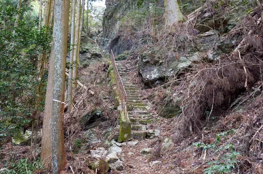 | ▲御来光の滝からの山道の様子 | ▲途中にある階段 |