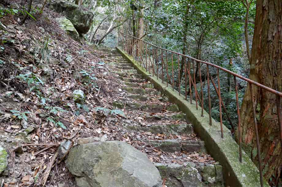 | ▲奥に見える御来光の滝 | ▲雄鴨の滝からの山道 |