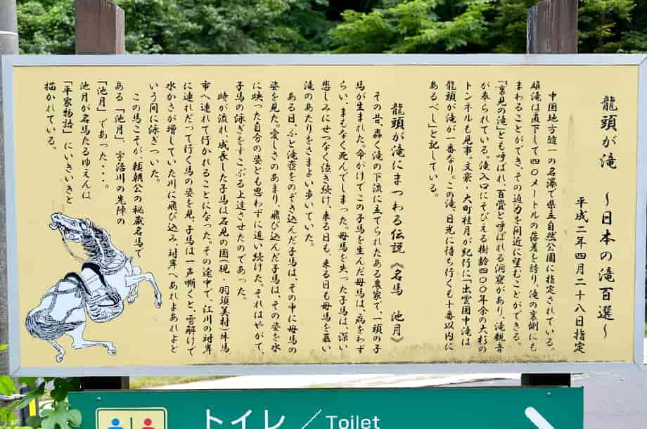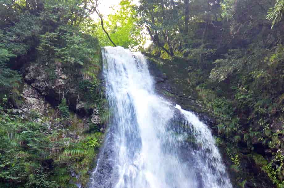 島根県雲南市にある「龍頭が滝」は、掛合町松笠地区を流れる滝谷川上流域に流れ落ちている。 雌雄ふたつの滝があるが、この雄滝のことを「龍頭が滝」と呼ぶことも多い。 雄滝は落差40m程の大きな滝で、ひと目見ると印象に残る。 落差もさることながら、辺りの景観と相まって、堂々と水が流れ落ちる様子は素晴らしい。 はっきりとした広い滝壺があり、滝前もよく開けているので清々しい。 力強い滝でもあり、龍頭が滝は島根県でも有数の滝だと思うが、「日本の滝100選」にも選ばれているのがよく分かる。 滝が流れ落ちる岩の下方部分には洞になった大きな亀裂が見られるが、これも雄滝を特徴づけている。 滝の左には階段が設けられていて、この洞の中から眺めることもできることから、「裏見の滝」と呼ばれることもある。 洞の中には滝観音が安置されていて、この滝が信仰の場になっていることも窺える。 周辺は自然を損なわずによく管理・整備されているが、ここに来るまでの遊歩道も歩きやすく、途中には木製の階段も整備されている。 また、この遊歩道の両脇にある杉木立も見事なもので、樹齢は400年を超えていると言われている。 遊歩道からは「雌滝」の様子も一部垣間見ることができるので、僅かな距離ではあるが、滝までの道のりも充分に散策を楽しむことができる。 尚、龍頭が滝とはやや離れているところに、八つの滝が続いて現れる「八重滝」があるが、これら二つの滝は、共に「竜頭八重滝県立自然公園」としても指定されている。 龍頭が滝 (雄滝)への交通・アクセス さて、龍頭が滝へは、自動車の場合、松江自動車道・吉田掛合インターからだと、インターを降りてそのまま進んで行くと突き当りになるので、この交差点を「飯南・掛合」方面へ向かって右折する。 右折した道は県道38号線で、しばらく道なりに走って行くと突き当りになって、国道54号線と交わるようになる。 ここを右へ曲がって「松江・木次」方面へ向かって国道54号線を進んで行くと、やがて「増砂」バス停がある。 この所に「← 湖陵・佐田 県道39号線」の道路標識があり、「← 龍頭が滝」の案内標識もかけられている。 この案内標識は反対側にも設置されているが、この分岐を左へ入ると県道39号線で、左折してから道なりに2.5km程行くと、「← 3km 龍頭が滝 」の案内標識がある。 この分岐を左折して道なりに走っていくと、道路右側に駐車場があり、「日本の滝100選・龍頭が滝」と彫られた石碑も建てられている。 ここまで、吉田掛合インターから20〜25分程で、駐車場から渓流沿いの遊歩道を歩いて行くと案内板が設置されていて、その先に案内標識も立てられている。 案内標識は橋の手前に立てられていて、「雄滝へは右の橋を渡って80m、雌滝は左へ進んで40m」と記されていて、雄滝・雌滝の分岐になっている。 雄滝へは、橋を渡って、立派な杉木立の遊歩道を登って行くとほどなく滝前に着く。 遊歩道はずっと登りが続くが、木製の階段が設置されていて、歩きやすい。 また、階段を上った辺りに雌滝への分枝があるが、雄滝へはそのまま進むとすぐに滝前で、目に入る光景は素晴らしく、強く心に残る。 雌滝との分岐からここまで、5分もかからず、駐車場からでも10〜15分もあれば滝前に着く。 また、県道39号線にある「← 龍頭が滝 3km」の案内標識からそのまま進んで行くと、やがて「飯石ふれあい農道」と交差するようになる。 交差点の手前には「← 波多・穴見」と「← 4km 龍頭が滝」の案内標識もあるので、その先の交差点を左折して、農道を道なりに進んで行くと、「池月トンネル」を抜けた先の道路右側にも広い駐車場がある。 この駐車場までも、やはり吉田掛合インターから20〜25分程だが、この農道脇の駐車場からだと、池月トンネル手前の脇道を入って行き、林道途中の案内標識のところから階段を降りるようになっている。 |