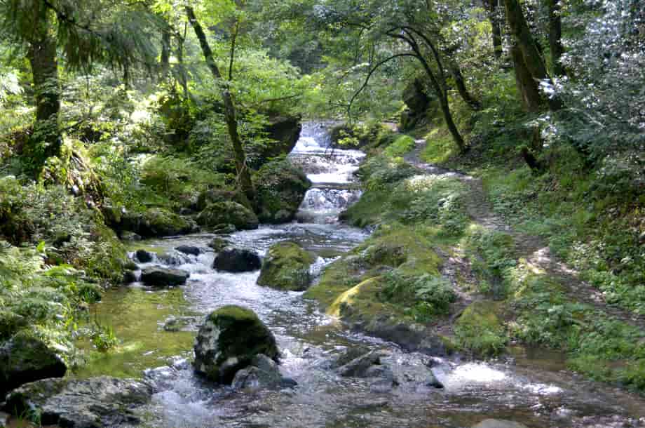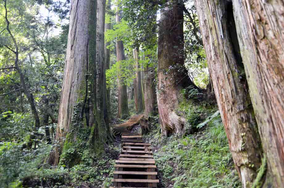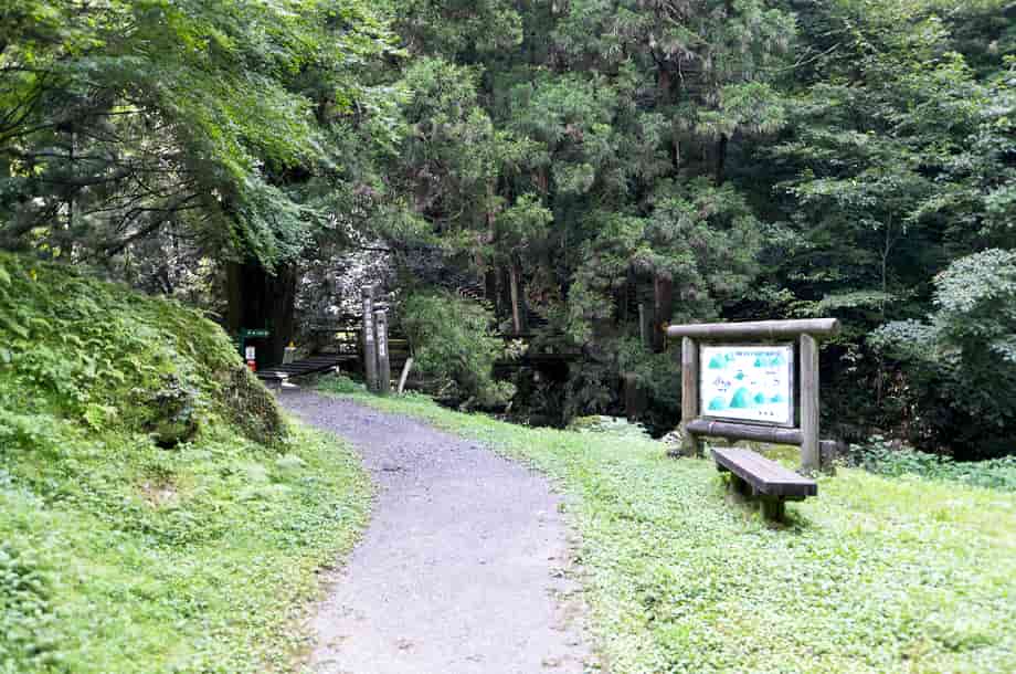 | ▲駐車場の先から延びる滝への道 | ▲案内板までの道の様子 |