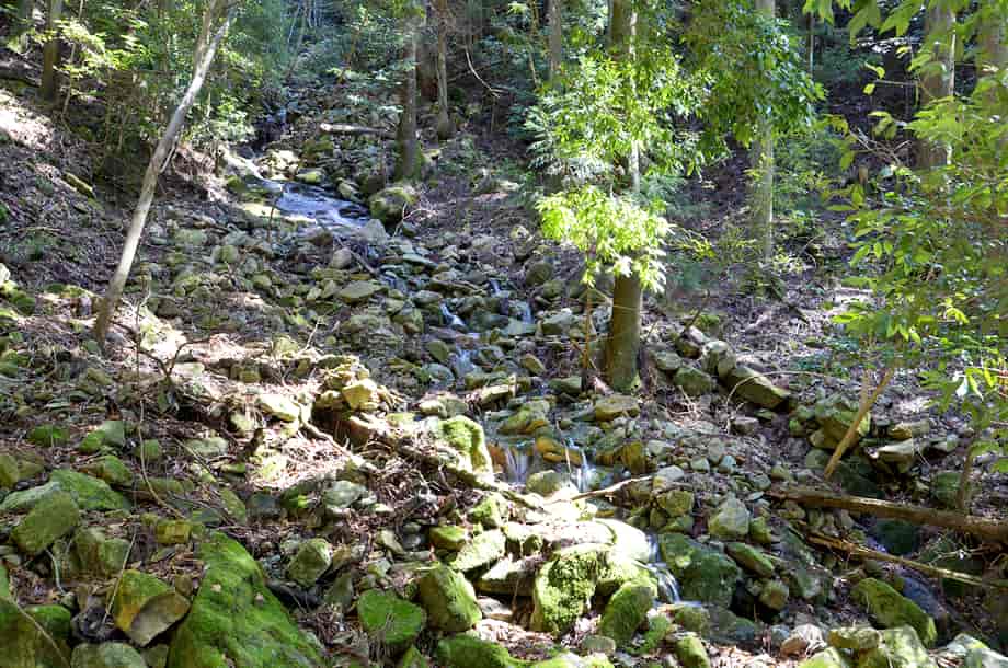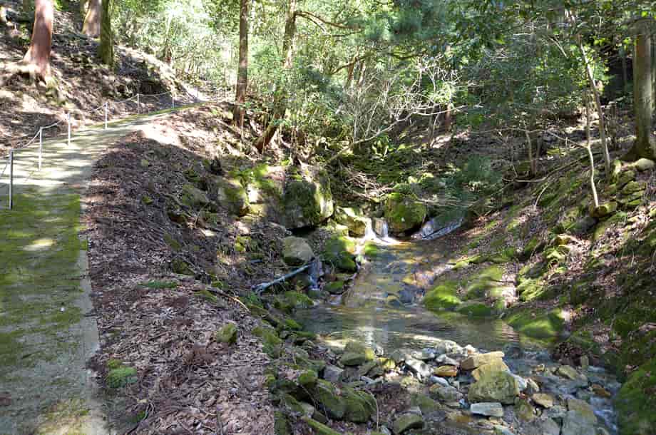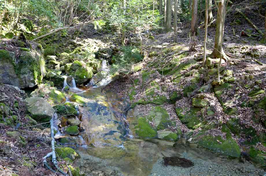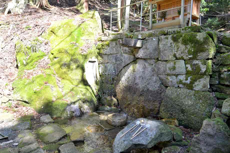 兵庫県朝来市にある「手水の滝」は、岩津地区を流れる円山川の支流・観音川の上流に流れ落ちている。 総落差は10m程はあるのだろうか、源流域にあるため、滝と言うよりも渓流といった感じで、水量が少ないと流れも分からないほどかもしれない。 しかし、この流れが、すぐ下流にある長大な「岩屋観音の滝(奥の院の滝)」をつくり出していて、このような細い流れが大きな滝をつくるとは、何か心入るものがある。 名前のように、滝から流れる水は、鷲原寺奥の院の境内にある手水屋の水として使われているが、かつてはこの流れで直接身を清めたりしていたのだろう。 ところで、この奥の院の境内には見るところが多い。 観音堂は言うまでもないが、薬師堂の前の立つ大きな樹木の下には樹洞があり、稲荷神らしいものが祀られている。 周辺もよく管理・整備されているようで清々しく、ここから行者岳への山道が延びている。 手水の滝への交通・アクセス さて、手水の滝は麓にある鷲原寺の奥の院・岩屋観音のところに流れ落ちているが、岩屋観音までの交通は「岩屋観音の滝」のページで紹介しているので、駐車場からだと5分程のところに流れ落ちている。 駐車場からの階段を上ると奥の院の境内で、休憩所やお堂、鐘楼などが建てられている。 左手には急な石段があり、それを登り切ると観音堂があり、この辺りからでも観音堂を見上げることができる。 観音堂へは、石段から登って行くことができるが、右手にある山道から登って行くこともできる。 この山道の途中に行者岳への登山道との分岐があるが、手水の滝はこの辺りに流れ落ちている。 小さな滝で、主瀑は1.5〜2m程だが、全体は斜面の岩の間を縫うように流れ落ちていて、落差よりも長さが目に入る。 途中からは導水管が引かれていて、鐘楼前の手水屋に流れ込んでいる。 |