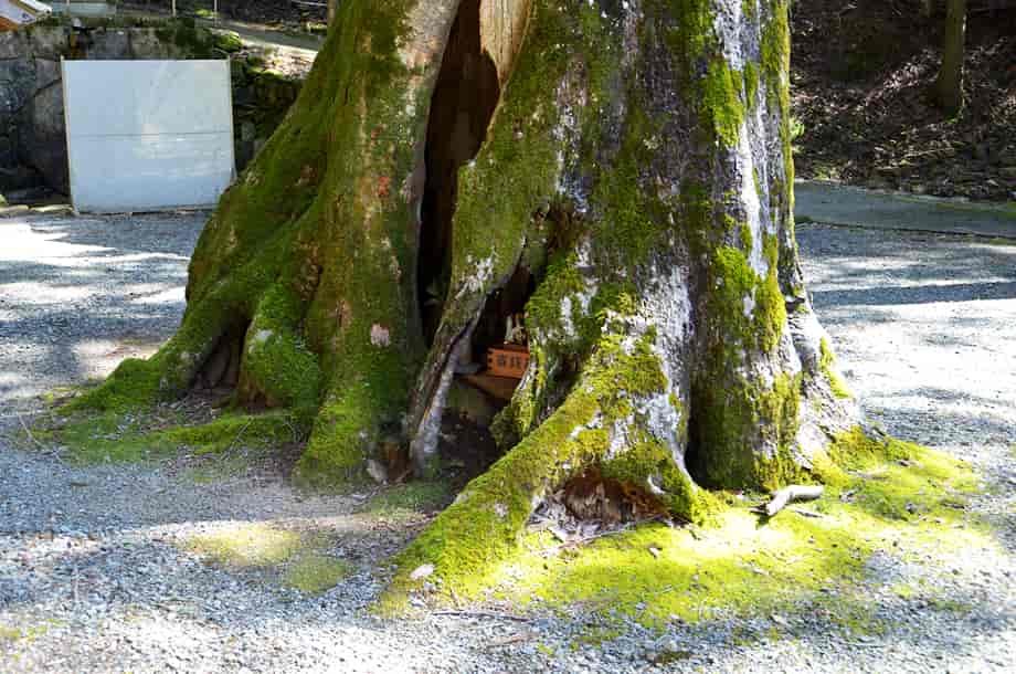 | ▲奥の院境内の様子 | ▲樹洞に祀られている祭神 |