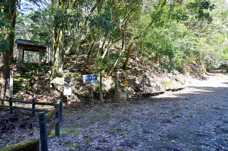 | ▲鷲原寺・観音参道口の石柱 | ▲駐車場付近の様子 |
