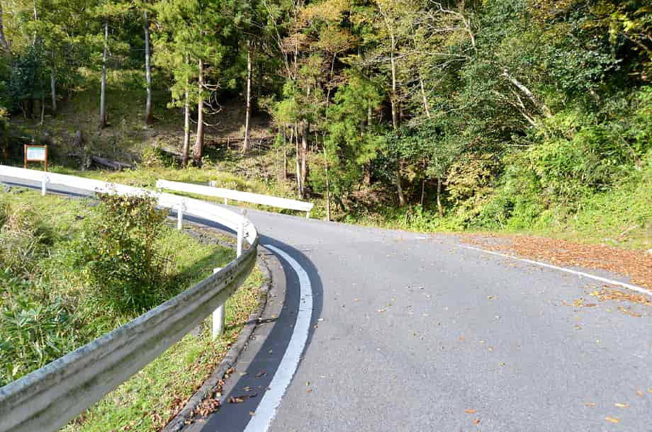 | ▲滝のあるカーブ付近の様子 | ▲画面右が用野の滝 |
