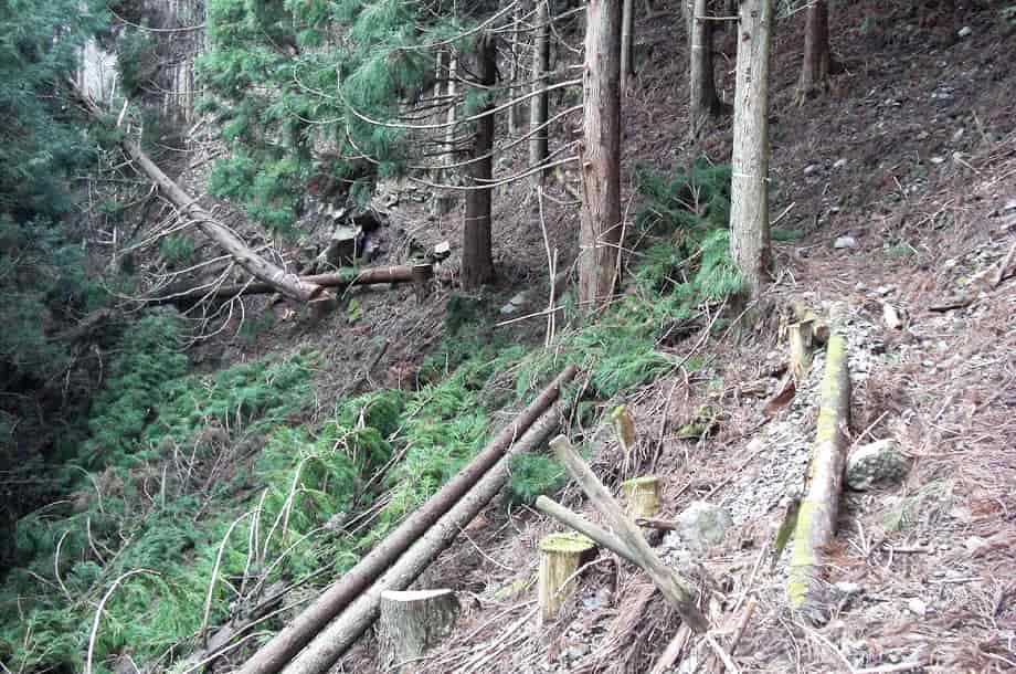 | ▲山道への分岐にある説明版 | ▲山道の様子 |