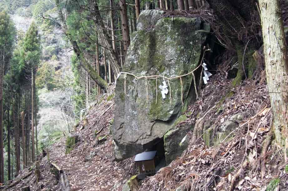 | ▲山道途中の大きな岩 | ▲落ち口辺りの様子 |