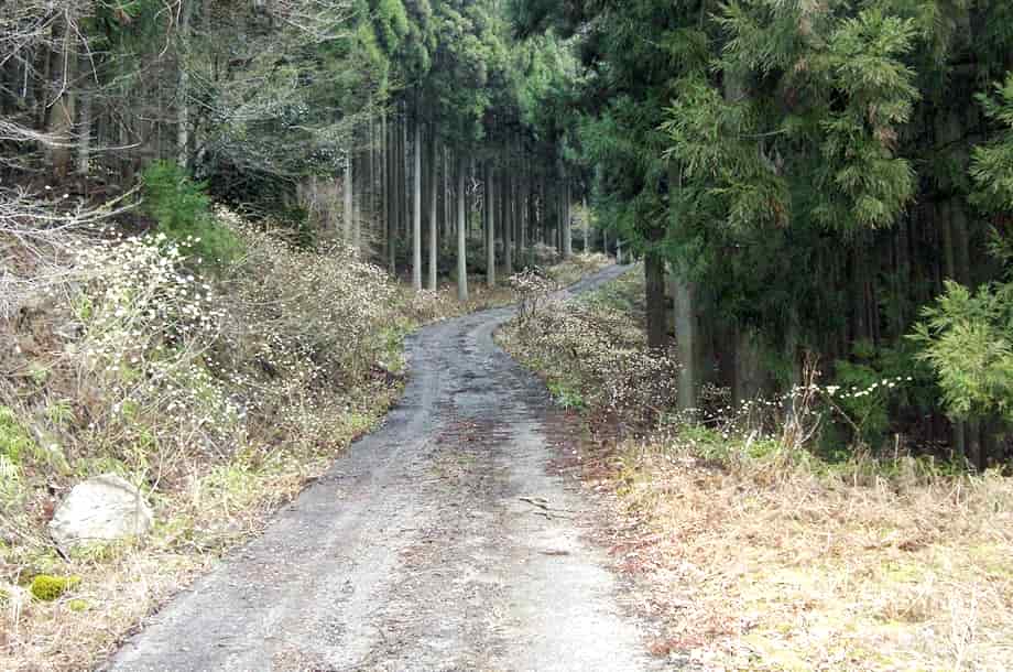 | ▲林道入り口のゲートの様子・向いにも駐車場がある | ▲ゲートからの林道の様子 |