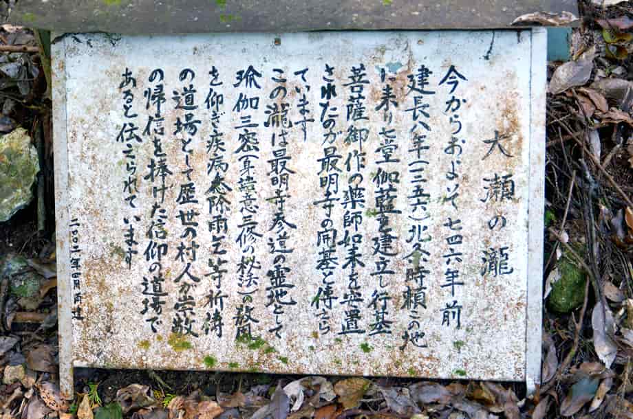 | ▲滝前から | ▲大瀬の滝・説明板 |