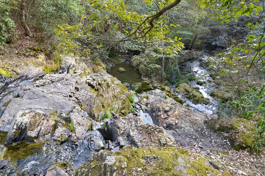 | ▲落ち口から上流側の様子 | ▲下流側の様子 |