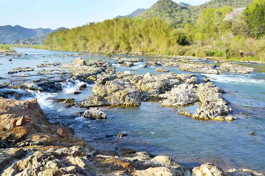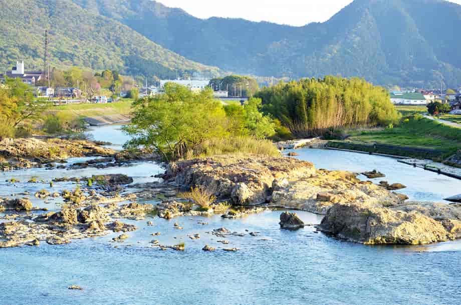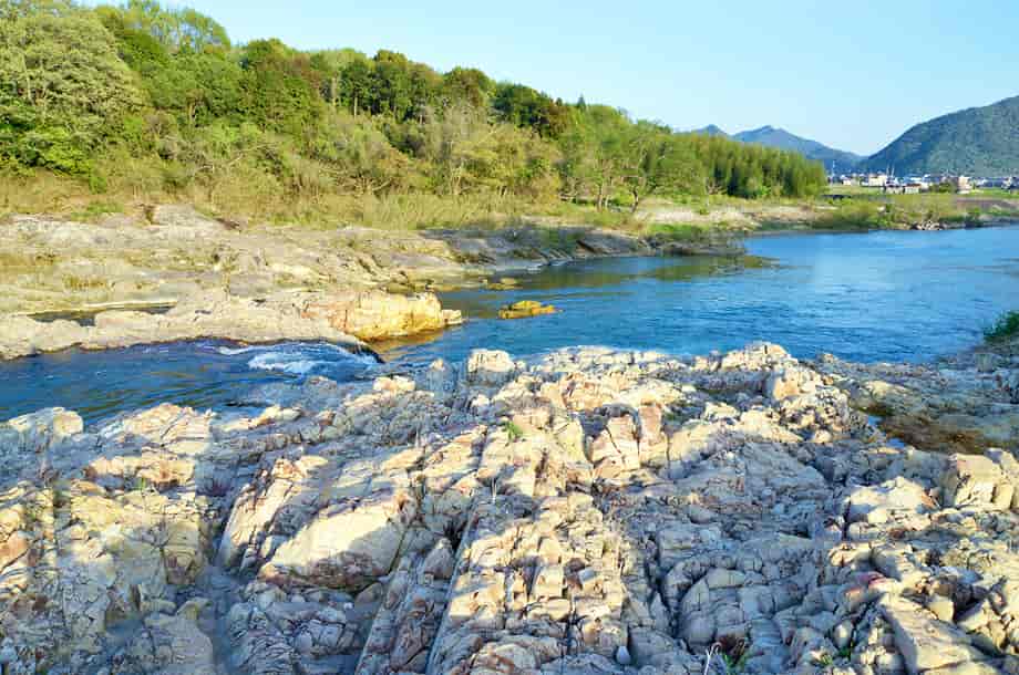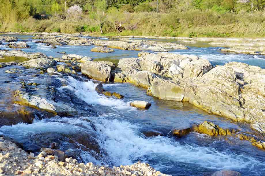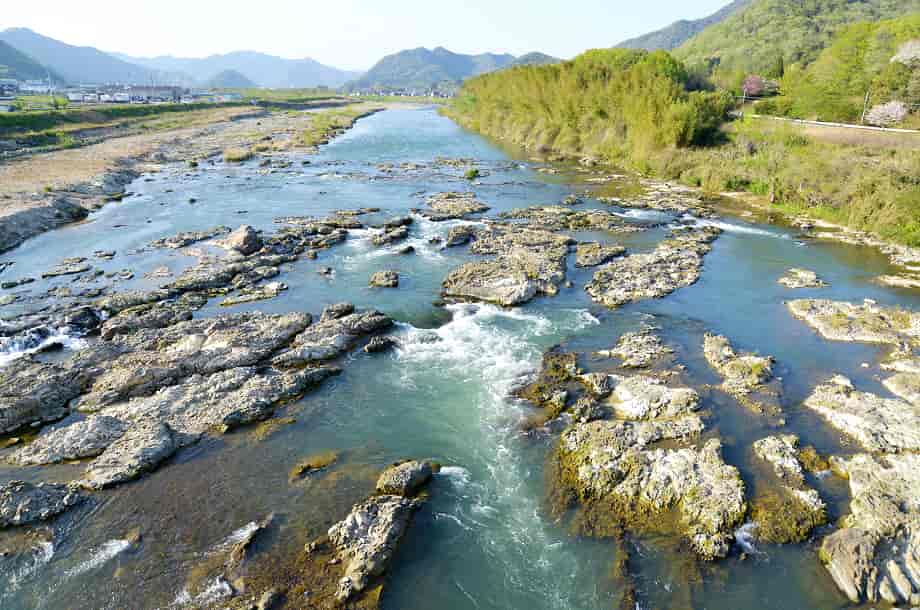 | ▲橋の上流側にある灘 | ▲道路に架かる橋の上から見た上流側の様子 |