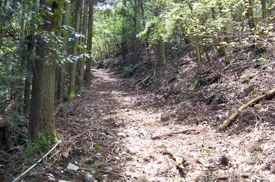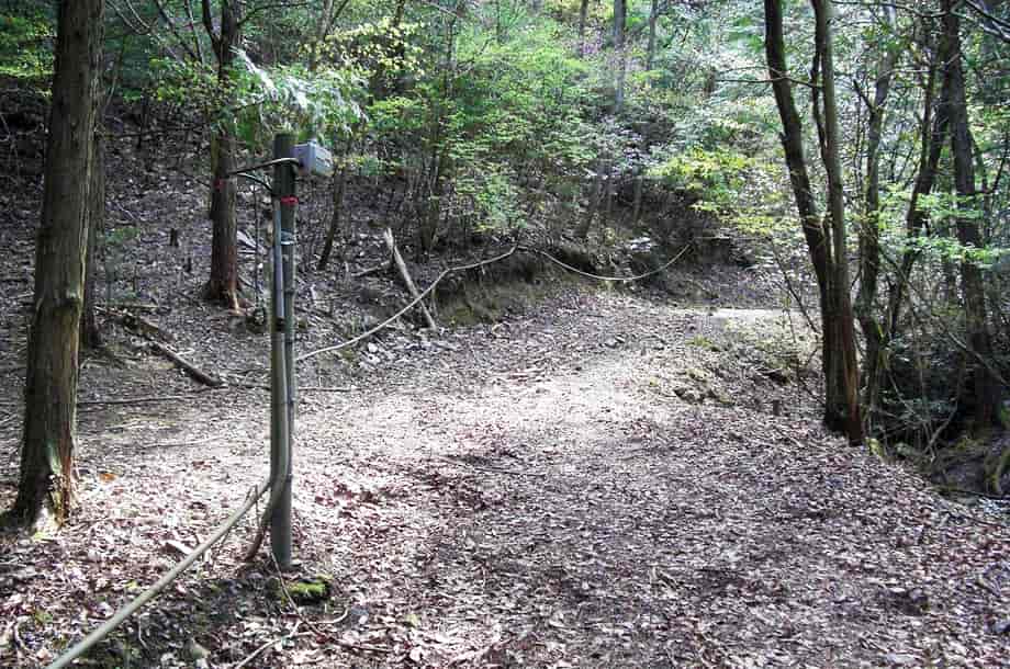 | ▲林道終点の様子・写真正面がゲート方向 | ▲林道終点からの山道 |