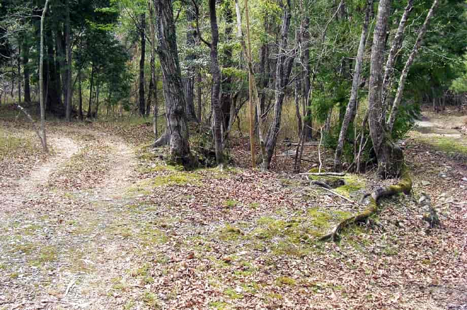 | ▲上の滝との分岐・下の滝へはここから直進してもよい | ▲分岐辺りから沢への様子・この時は、この辺りから沢へ降りて滝を目指した |