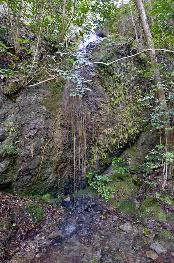 兵庫県赤穂郡上郡町にある「瀧谷の滝」は、栗原地区を流れる梨ヶ原川の枝沢に流れ落ちている。 瀧谷の滝は、上の滝・中の滝・下の滝と、三つの滝の総称のようで、主瀑はこの下の滝になる。 落差は15m程度と言われているが、滝前から見ると上方がよく見えないので、それほど落差があるようには見えない。 この時は水量が少なく思え、水は滴り落ちるような様子だったが、瀧谷の滝は普段から水量は少ないようなので、この時が特に少ないわけではなさそうでもある。 また、滝前は狭いので眺める場所は限られているが、中の滝辺りから見れば、下の滝の落ち口の様子が分かる。 ところで、下の滝は瀧谷の滝の主瀑ではあるものの、あまり人が訪れていないようで、周辺は荒れた感じがする。 下の滝へは、手前にある石段の分岐から、まっすぐに進むか、その辺りから沢に降りなければならないが、はっきりとした道はない。 それなので、石段のある上の滝や中の滝へ登って行ってしまうためだろうか。 しかし、瀧谷の滝は信仰の対象にもなっていて、上の滝の横には不動堂も建てられている。 この下の滝も信仰の対象になっているはずなので、かつては滝行なども行われていたのかもしれない。 その頃はいっそう山深く寂しいところであったろうから、行の厳しさを窺うことができるように思う。 瀧谷の滝への交通・アクセス さて、瀧谷の滝へは、自動車の場合、山陽自動車道・備前インターからだと、インターを降りたら「神戸・姫路」方面へ進む。 そのまま国道2号線に入るので、しばらくは道なりに進んで行く。 備前市から上郡町に入っていくと、「← 上郡・県道5号線」の道路標識があるので、その先の分岐を上郡方面へ向かって左へ入る。 少し行くと、右手に墓地、左手に変電所のような設備があり、その先に左へ曲がる分岐がある。 ここを左へ曲がり、道なりに進んで行くと、道路左に「一畑薬師」のお堂がある。 その先に左へ入る分岐があるので、そちらの道へ進む。 曲がった道は集落の中を通るので道が細いが、すぐにカーブミラーのある交差点がある。 このカーブミラーのところを左へ曲がるが、ここからの道もかなり細いので、注意して進むようにする。 左へ曲がってから少し行くと、突き当りのようになって、道は右へと大きく曲がっている。 そのまま右へ行くと小さな橋が見えるので、橋を越えて左に曲がるとJR山陽本線の高架が見える。 左へ曲がって高架を潜ると、少し広場のようになっていて、向かいは広い公園になっている。 自動車はこの辺りに置くこともできるが、左に見える橋のところに「滝谷820m」の案内標識が立てられているので、そのまま進んでもよい。 橋を渡るには、この角はかなり鋭角に曲がらなければならないので、前にある広い公園などで車を回転させて侵入するようにした方がよい。 備前インターからここまで15〜20分程度だが、集落内に入ってからの道はかなり狭くて分かりづらく、突き当りになってしまうところもあるので、ゆっくりと注意しながら進むようにした方がよい。 案内板のところを左に曲がり橋を渡ると、少し先に獣除けのゲートがある。 ここからは地道になるが、このゲートを開けて進んで行くと、またすぐにゲートがある。 ゲートは必ず閉めるようにして先を進むと、崩れたような橋がある。 陥没しているような橋だが、少しばかり冠水している程度で、水深はない。 この橋を渡って先に進むが、左にも道があるので、ここを少し入った辺りに駐車するのもよい。 冠水したような橋から先は、小さな倒木などはあるが、どうにか進むことができる。 少しばかり走ると、終点のようなところになるので、ここに一台程度なら駐車することができる。 ここからは山道になるが、特に荒れているというほどではなく、そのまま歩いて行くと、2〜3分程で大きな岩が右手にある。 この岩の手前部分には、右へ登って行く石の階段があり、これを登って行けば上の滝・中の滝へ向かう。 下の滝へは、ここから直進して、踏みあと程度の道をたどればよいようだが、どうも先が見えないようなので、この時は手前に沢へ降りる道があったので、そちらから下の滝へ向かった。 しかし、沢への道も踏みあと程度で、沢へ降りてからは道なども分からない。 適当に遡っていくだけで、沢沿いに樹木の間を抜けたり、岩をよけたりして進むしかない。 また、途中で渡渉しながら上流を目指して行かなければならないが、遡っていくと小さいながら三段になった滝がある。 この先には右に大きな岩があるので、この岩を注意深く登っていく。 この岩の辺りから次第に滝音が聞こえるようになり、大きな岩を登り切って少しばかり進むと滝が見える。 沢に入ってからも道などはないので、植物の繁茂する時期には、沢を直接遡らなければならないかもしれない。 沢に降りてからここまで、距離はないが道が分からないので、10分程はかかっている。 また、下の滝