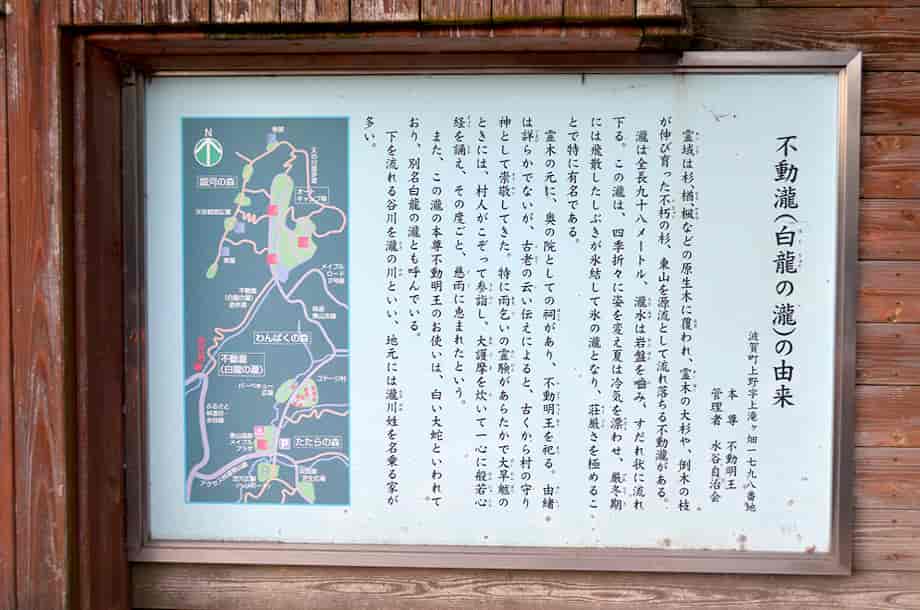 | ▲白竜の滝・仰観 | ▲入り口にある説明板 |