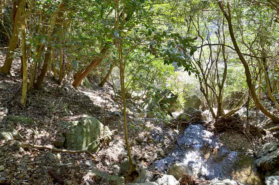 | ▲途中にある分岐・左へ進む | ▲倶利加羅不動の滝・遠望 |