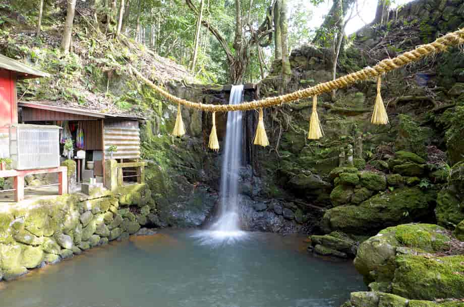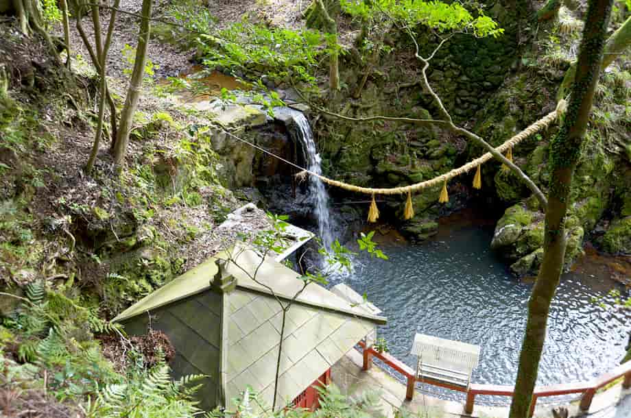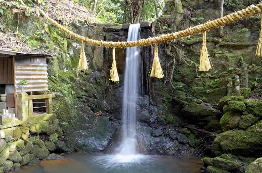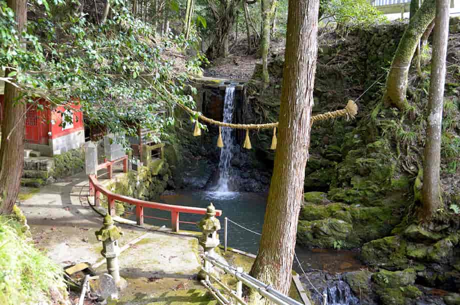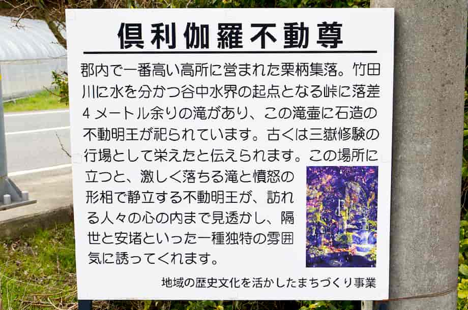 兵庫県丹波篠山市にある「倶利加羅不動の滝」は、栗柄地区を流れる滝の尻川に流れ落ちている。 名前のように、信仰の滝で、滝前には注連縄が張られている。 落差は4〜5m程で、落ち口は石造りの樋になっているので、滝行も行われているのだろう。 脇にはお堂が建てられているが、滝の右には、不動尊と地蔵尊に見える石仏も安置されている。 この石仏は滝の方を向いていて、正面から見ると横向きに見える珍しい配置になっている。 しかし、滝行を行う行者を見守るように安置されているので、この滝に相応しいように感じられる。 下流側にも小さな渓流滝が続いていて、この付近にも不動尊と思われる石仏が安置されているので、この辺り一帯が霊場になっているのだろう。 僅かな距離の遊歩道を含め、周辺は閑静で、行の場である厳かな雰囲気が感じられる。 ところで、滝への入り口には観音堂が建てられているが、近くの説明板には、「堂内には観音像のほか、栗柄部落内の仏像が集められて祀られている」と書かれているので、このお堂も地域からずっと大切にされているのだろう。 また、この説明板には、「倶利加羅不動尊は倶利加羅明王とも呼ばれ、栗柄の地名はこれに由来する」との旨のほか、「昔、福徳貴寺の祐盛法印が、滝つぼに住む竜女を成仏させた」とも書かれていて、この滝にまつわる言伝えが偲ばれる。 倶利加羅不動の滝への交通・アクセス さて、倶利加羅不動の滝へは、自動車の場合、舞鶴若狭自動車道・丹南篠山口インターからだと、インターを降りて左折し、その先の「網掛」の交差点を「宮田」方面へ向かって左折する。 道なりに走って行くと「にしきトンネル」を潜るようになるので、このトンネルを抜けた先の「にしきトンネル西」の交差点を右折する。 右折した道は県道97号線で、しばらく走って行くと「← 13km 春日・三和 15km →」の案内標識があるので、その先の分岐を左の春日方面へ向かう この交差点には信号機などはないが、正面に「くりから谷中分水界」の大きな説明版があり、その横には「← 倶利加羅不動の滝」の案内板も立てられているので、すぐに分かる。 滝へは、この分岐を左に入り、すぐに右の脇道に進む。 右角には「丹波木綿保存会」と書かれた案内板が目に入り、やや見づらいが「倶利加羅不動尊」の説明板も脇に立てられている。 この脇道を斜めに入って行くようにすると、100m程で観音堂があり、自動車はこの辺りに駐車することができる。 ここまで、丹南篠山口インターから12〜13分程で、近くに獣除けのゲートがあるので、これを開けて150〜200m程歩いて行くと滝前に着く。 但し、ゲートを開けた後は、必ず閉めておくように注意する。 ゲートから先の遊歩道はよく整備されていて、短い距離だが途中には案内板も設置されている。 ところで、脇道に入る手前の分岐にある「くりから谷中分水界」の説明板には、「2kmほど離れた鼓峠は分水界になっていて、ここから分かれた宮田川は、篠山川から加古川を経て瀬戸内海へと注いでいる。 また、一方の杉ヶ谷川は、宮田川に合流するのが普通だが、これには合流せず、観音堂辺りで突如西へ折れ、滝の尻川から竹田川、由良川を経て日本海へ注ぐ」と、概ねそのように記されている。 この様な地形はきわめて珍しいようで、成程、地図などを見れば、その様子がよく分かっておもしろい。 |