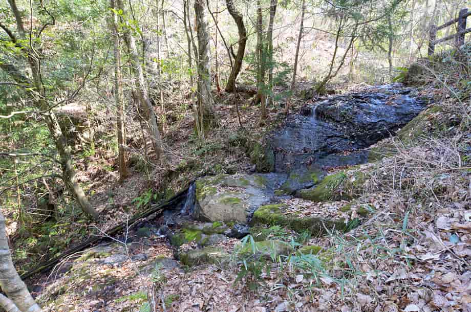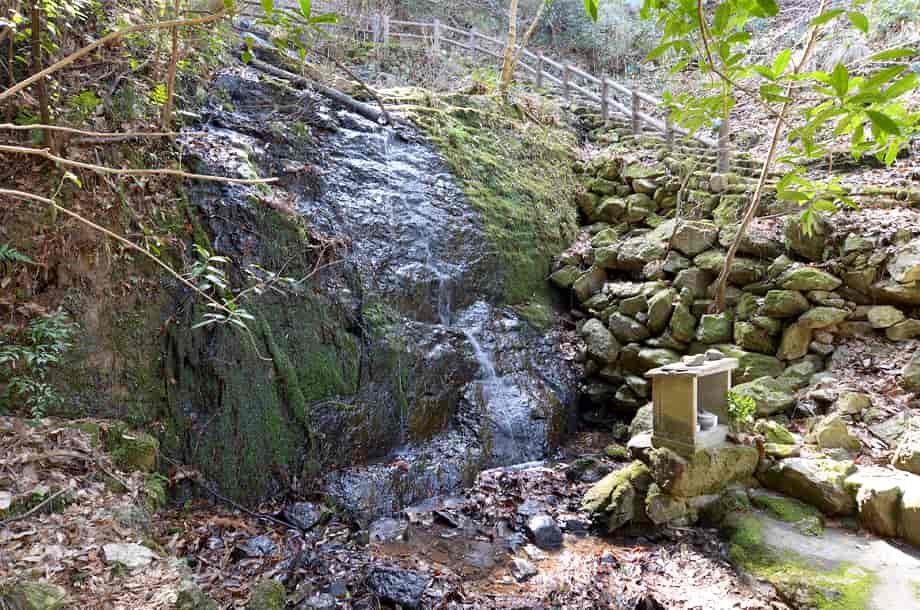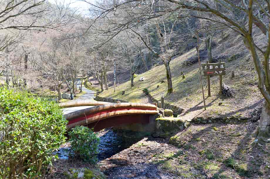 兵庫県たつの市にある「不動の滝」は、新宮町新宮地区を流れる揖保川の枝沢に流れ落ちている。 広くてよく整備された東山公園内にある滝で、落差は8〜10m程だろうか。 水は黒っぽい岩肌を流れ落ちていて、上方部分は段瀑になっている。 ただ、普段から水量は少ないようで、水は岩肌に沿うように流れ落ちている。 しかし、名前のように、滝近くには不動尊の石仏が安置されていて、信仰の対象にもなっている。 不動尊は、滝前から左へ少し上ったところに安置されているが、滝前にも祭壇のようなものが設置されている。 遊歩道沿いにある説明版によると、「冬にはつららの下がる厳しい荒修行の場で、それにちなんで、今では不動明王を祀っている」と記されている。 滝には樋が差し出されているのがよく目立つが、これも滝行の名残りなのかもしれないが、滝前には祭壇があるので、今でも行が行われているのかもしれない。 また、不動の滝は「犬がえりの滝」とも呼ばれているそうで、説明板には「昔は狭い小嵐渓流沿いの山道に立ちふさがる滝で、犬も登れないほど険しい岩肌を流れ落ちていた」とも書かれているので、公園として整備される以前は、周辺は険しい山中だったのだろう。 その様な環境にあったので、滝は荒修行の場にもなっていて、古くから信仰の対象になっていたのだろうが、滝付近には、幟を立てる旗竿が何本も見られるので、現在も祭事などが行われていて、厚い信仰を集めていることが窺える。 不動の滝への交通・アクセス さて、不動の滝へは東山公園を目指すことになるが、自動車の場合、たつの市街から国道179号線を北上していくと「井野原」の交差点があるので、ここを右折する。 交差点の手前の道路右側には「東山公園 1.2km →」の案内標識があるので、それにも注意するとよい。 右折して少し行くと、左側に「曽我井橋」があるので、ここで左折して橋を渡る。 橋を渡ってすぐの交差点は左折して、揖保川沿いに進んで行く。 あとは道なりに走って行くと、ほどなく道路左側に広い駐車場があるので、自動車はここに止めることができる。 ここまで、JR姫新線・本竜野駅辺りからだと15〜20分程で、山陽自動車道・龍野インターからでも20分ほどで着く。 不動の滝へは、駐車場の先に分岐があるが、分岐のところには国民宿舎「志んぐ荘」があるのですぐに分かる。 この分岐のところには「東山公園」の石碑が設置されているので、ここを右へ入って行く。 分岐から100〜150m程も進むと東山公園の入り口で、不動の滝へは、入り口付近にある橋を渡って、そのまま歩いて行くと5分程で滝前に着く。 遊歩道をそのまま進むと滝上で、途中の脇道を左へ進むと滝前に着く。 また、橋を渡ったところには案内板も設置されていて、公園内はよく整備されているので気持ちがよく、東山公園はツツジと紅葉の名所にもなっていて、訪れる人も多い。 尚、不動の滝は宮本武蔵修行の滝としても紹介されている。 |