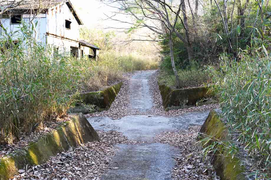 | ▲獣除けのゲート | ▲ケートから先にあるコンクリートの川底 |