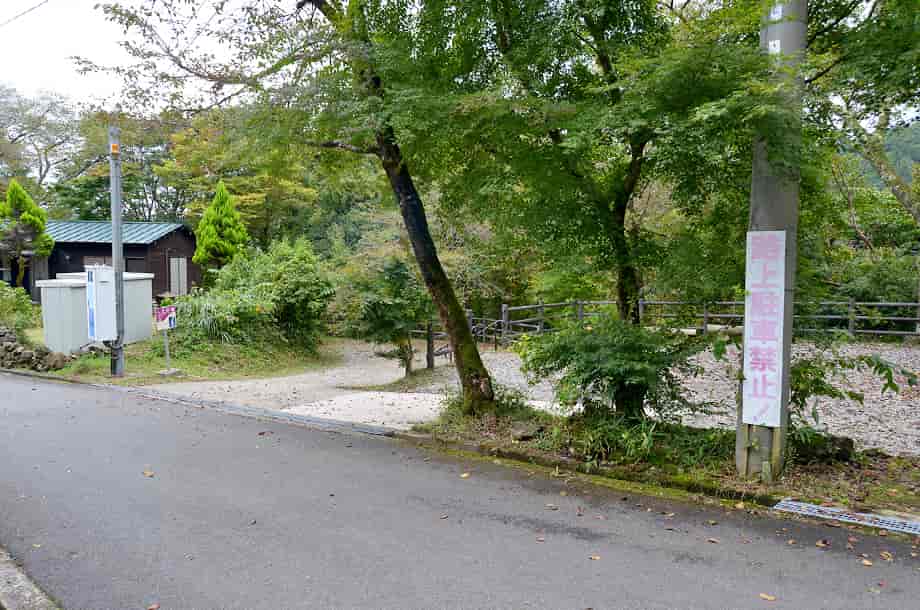 | ▲国道からの分岐・右の壁沿いを進む | ▲駐車場の様子 |