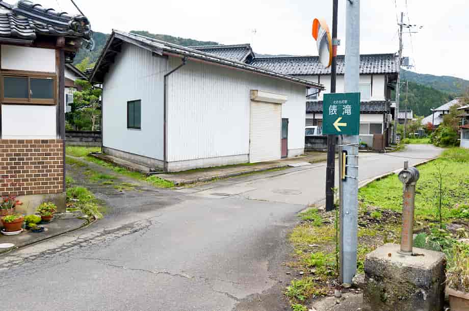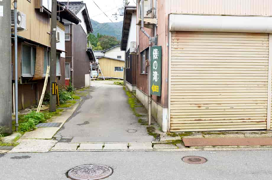 | ▲バス停前の路地 | ▲途中にある案内板 |