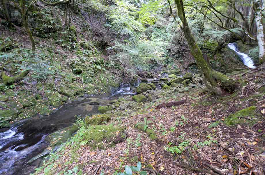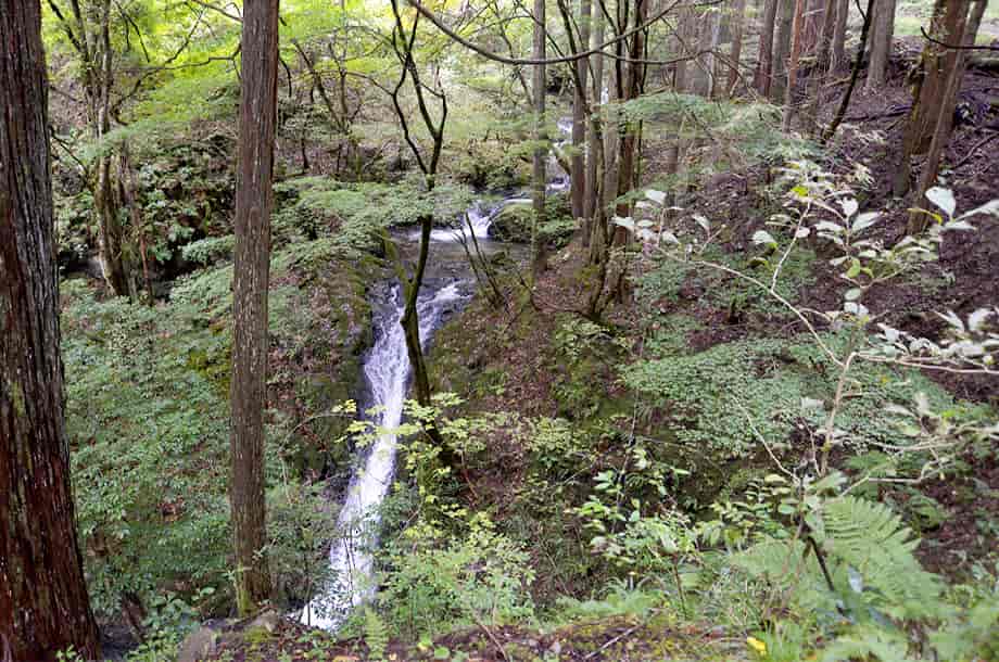 | ▲斜面から見る下段の滝 | ▲上流側に見られる渓流滝 |
