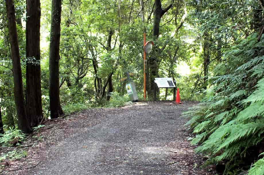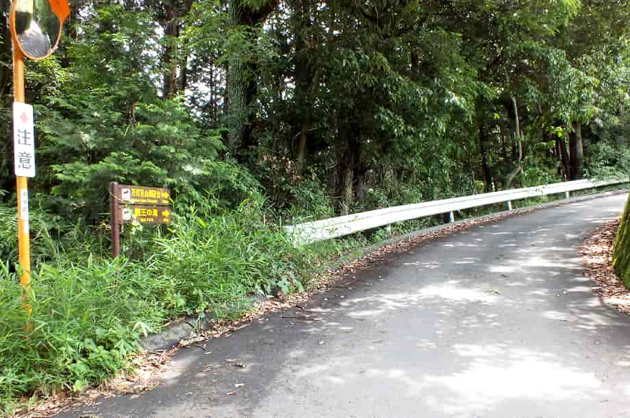 | ▲滝の入り口は、この標識から400m程 | ▲滝への入り口・説明板もある |