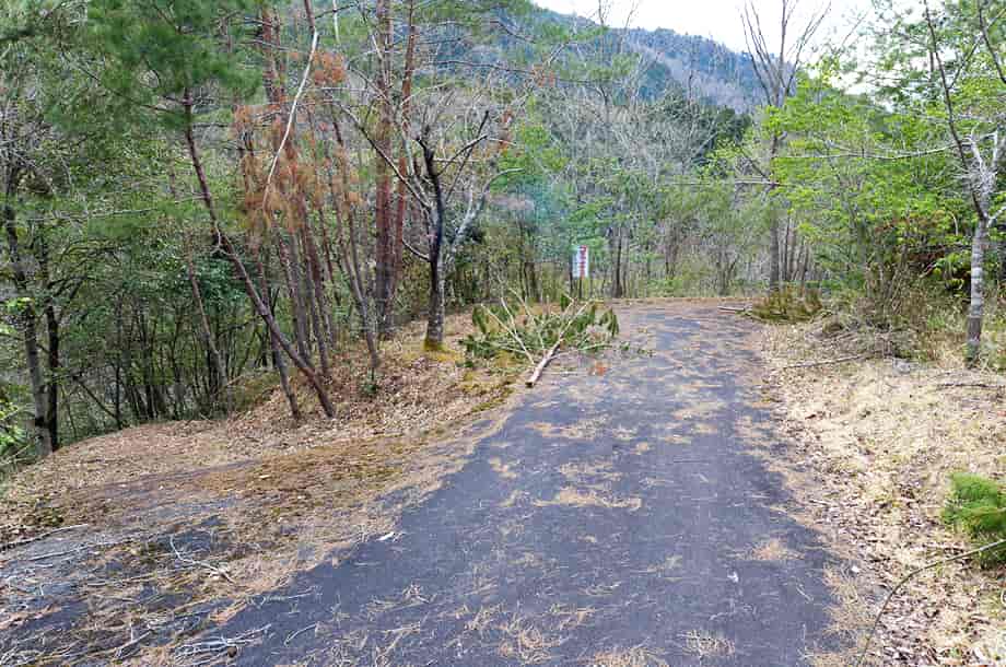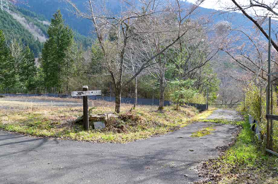 | ▲府道からの分岐・右の道へ進む | ▲駐車場の広場・滝へは右奥から入っていく |