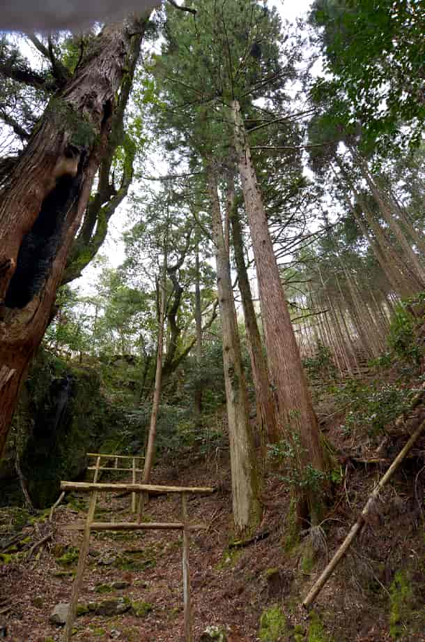 | ▲鳥居からの山道の様子 | ▲滝手前の様子 |