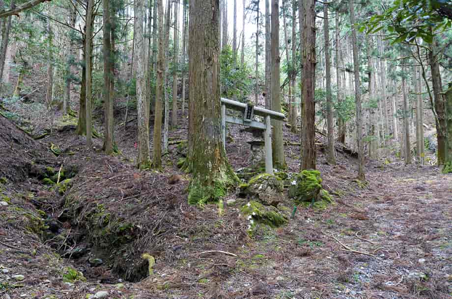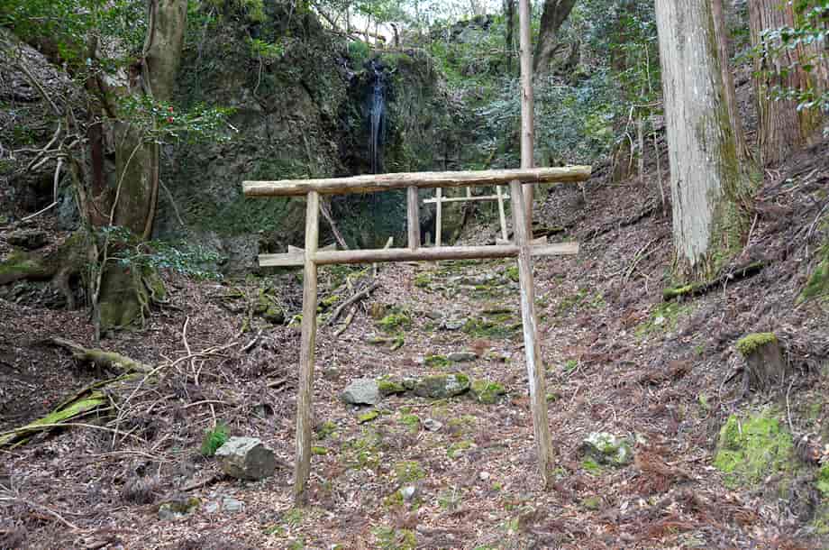 京都府京丹波町にある「笹尾不動滝」は、口八田地区を流れる須知川の枝沢に流れ落ちている。 落差7m程の小さな滝だが、この不動滝は、水の落ちる様子がおもしろい。 水は植物の根を伝って、滴り落ちるように流れていて、滝壺などもない。 この根はほとんど地面に届きそうで、遠目で見ると、まるで金属の細い楔か針が垂れ下がっているようにも見える。 普段から水量は少ないように思うが、かつてははっきりとした滝の流れがあったのだろう。 名前のように、脇には不動尊が安置されているが、辺りの様子から、修行のための滝だったのかもしれない。 林道から不動尊へ向かう入り口には、立派な石灯篭と鳥居が建てられているが、この石灯篭はかなり古いもののように見える。 それに、手入れはされているようだが、不動尊に相応しく、力強い造りをしている。 土台となるところには、これも古そうな石組みが施されているが、鳥居の前にあるふたつの岩も、狛犬の代わりのようにも見える。 ここから山道を登って行くと、更に二基の鳥居もあるので、この不動尊は、地域からずっと大切にされてきたことがよく分かる。 謂れなどは分からないが、石灯篭のあるところから不動尊まで、道もよく整備されていて、赤い目印などがあるもの目に留まる。 笹尾不動滝は大きな滝ではないが、これからもずっと大切にされる滝であろう。 水が伝わる根も、やがては地面に根付くだろうが、その時でも、ここは信仰の場としてあり続けると思う。 笹尾不動滝への交通・アクセス さて、笹尾不動滝へは口八田地区を目指すことになるが、自動車の場合、京都縦貫自動車道・丹波インターからだと、インターを降りて左折し、京都方面へ向かう国道9号線へ入る。 少し走って行くと「京丹波水戸」の交差点があるので、ここを「篠山」方面へ向かう府道702号線へと右折する。 府道702号線を進むと、ほどなく須知川を越えるが、その先に交差点がある。 この交差点からは左へと府道702号線が続いているので注意する。 左折して進んで行くと、やがて「口八田」の交差点があるが、ここも右折して、府道702号線を「篠山」方面へ向かう。 右折してから700m程で、左に「笹尾橋」があるので、この橋を渡って、あとは道なりに進んで行けばよい。 橋を渡ってから少し先に分岐があるが、どちらも同じところに出るので、右へ向かった方が走りやすい。 また、集落を過ぎたあたりから舗装が終わり、砂利道のような感じなる。 特に問題はないが、落石などにも注意して、ゆっくりと進む方がよい。 やがて、ガードレールのついた小さな橋があるが、ここまでは両側が耕作地で開けていて、獣除けの電気柵が張られている。 橋を越えると所謂林道になるが、ほどなく左側に水利施設があり、その前がやや広くなっている。 先へ進めそうでもあるが、自動車はここに駐車する方がよい。 ここまで、丹波インターから15〜20分程度で、水利施設から林道を歩いて行けば、2〜3分程度で、滝への入り口となる石造りの鳥居が左に見える。 鳥居を潜り、やや急な山道を登って行くと、5分もかからない内に滝前に着く。 鳥居からの道ははっきりとしていて、滝前にあるふたつの木の鳥居からは石段も敷かれているので歩きやすい。 ただ、滝周りは開けているが、斜面が多いので、腰を下ろせるようなところは少ない。 また、丹波インターを降りて右折し、最初の交差点も右折して2km程行くと、落差40mを超える「琴滝」があるので、時間があれば寄ってみるのもよい。 |