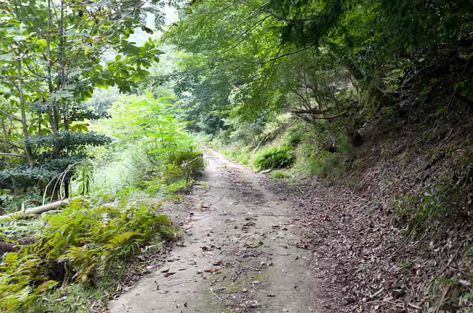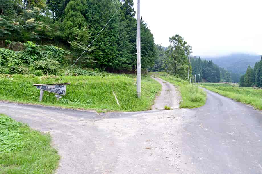 | ▲集落内にある橋・そのまま直進する | ▲集落を抜けた先の分岐・左へ向かう |