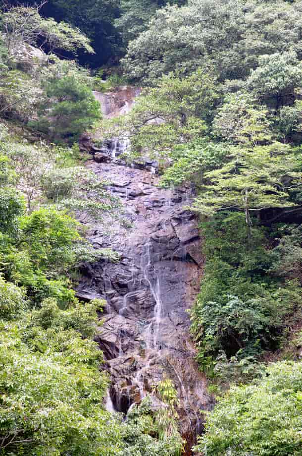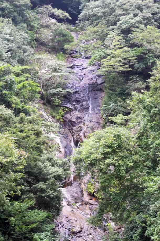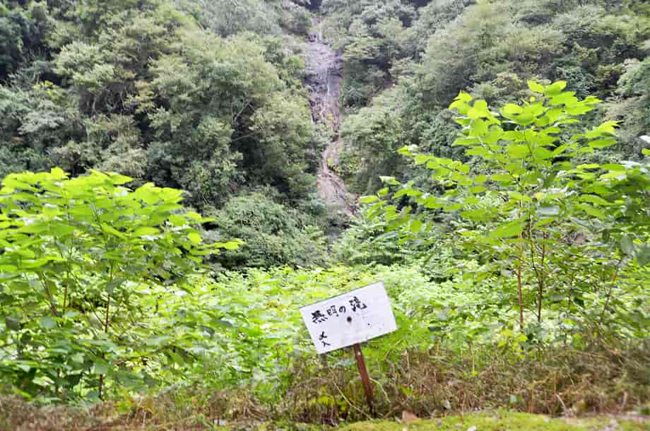 京都府京丹後市にある「無明の滝」は、久美浜町市野々地区を流れる川上谷川の枝沢に流れ込んでいる。 落差は40m程で、網野町にある「霧降りの滝」と共に、京丹後市の指定名勝になっている。 残念ながら、この時は水量が少ないようで、はっきりとした水の流れを見ることができなかったが、滝の様子は対岸からでも見て取ることができる。 斜面いっぱいほどもある落差は、40mを超えているようにも見え、遠望していても大きな滝であることが分かる。 時期的に植物が繁茂しているときなので、沢へ降りることはもちろん、沢の様子さえも見えなかったが、岩肌からは段瀑の様でもあり、細い流れだったが、変化のある水の流れも見て取ることができた。 いずれにしても、無明の滝は見事な滝で、水量があれば、さぞかし見応えする滝であるに違いない。 しかし、沢へ降りて滝下辺りからの景観はいっそう素晴らしいものだと思うが、植物の様子を見ると、常に斜面を覆っているようにも思う。 滝前には「無明の滝・×入」と書かれた標識があるので、沢へ降りることはできないのかもしれない。 無明の滝への交通・アクセス さて、無明の滝へは、自動車の場合、京都丹後鉄道宮豊線・久美浜駅付近からだと、国道178号線から国道312号線へ入り、「友重」の交差点で、右へ向かう府道706号線へ進む。 道なりにしばらく進んで行くと「布袋野」の交差点があるので、この分岐を左へ入る。 この交差点には信号機などはないが、住所表記と、分岐の正面に「← 国道482号線/尉ヶ畑・府道671号線」などの案内標識があるので、それに注意するとよい。 あとは道なりに進んで行くが、途中、集落内の橋を渡った先が分岐になっている。 この分岐には京丹後市営バスの「市野々」バス停があり、「無明の滝」の案内標識もあるので、それに従って直進して行く。 そのまま走って行くと集落を抜け、やがて「←高龍寺ヶ岳正面登山口」の案内標識が立てられている分岐があり、ここには「← 滝」の案内標識も立てられている。 それに従って左へ曲がって進んで行くと獣除けのゲートがあるので、無明の滝へは、ゲートを開けて林道を進んで行く。 ゲートから少し行くとやや広いところがあるので、自動車はそこに駐車することができる。 尚、獣除けのゲートは、必ず閉めるように注意する。 ここまで、久美浜駅辺りからだと15〜20分程度で、ゲートから先の道も特に問題はない。 駐車場所から少し行くと堰堤が左に見えるが、この堰堤を過ぎると、程なく「無明の滝」の説明板が設置されている。 滝は、その辺りから対岸に見えるが、説明板から少し先辺りからだと正面に見ることができる。 ただ、無明の滝は遠望することになるので、望遠鏡などがあれば重宝する。 また、付近には「布滝」があるので、時間があれば寄ってみるのもよい。 |