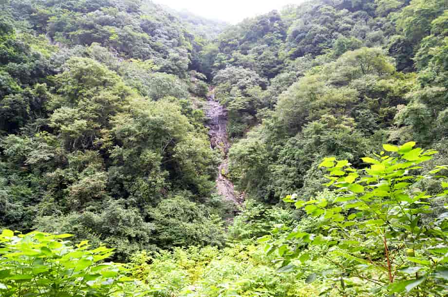 | ▲ゲートから先の林道の様子 | ▲無明の滝・林道からの眺め |