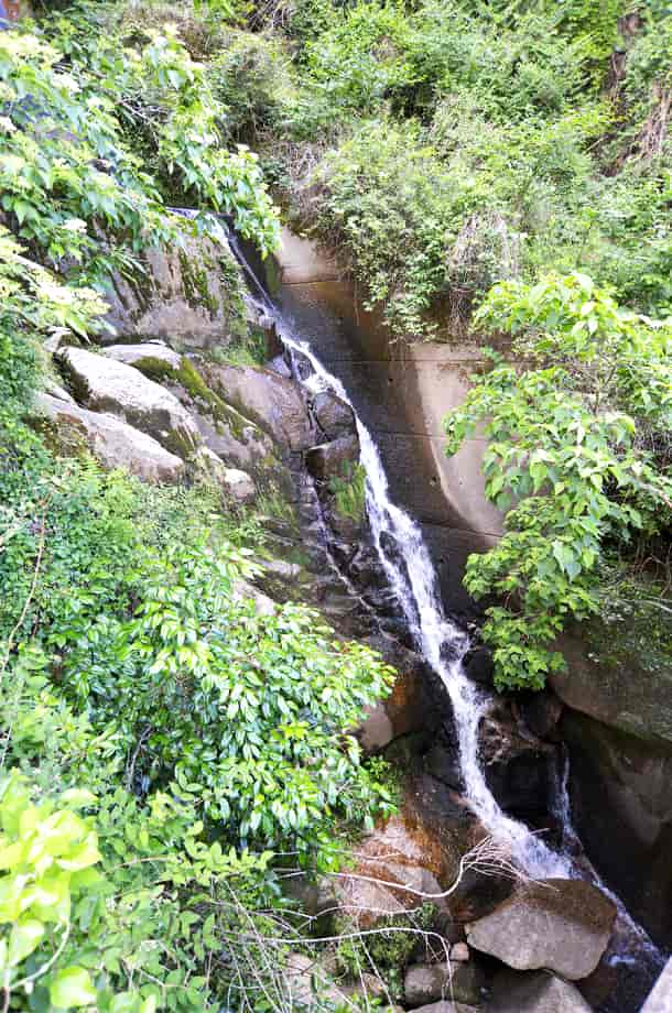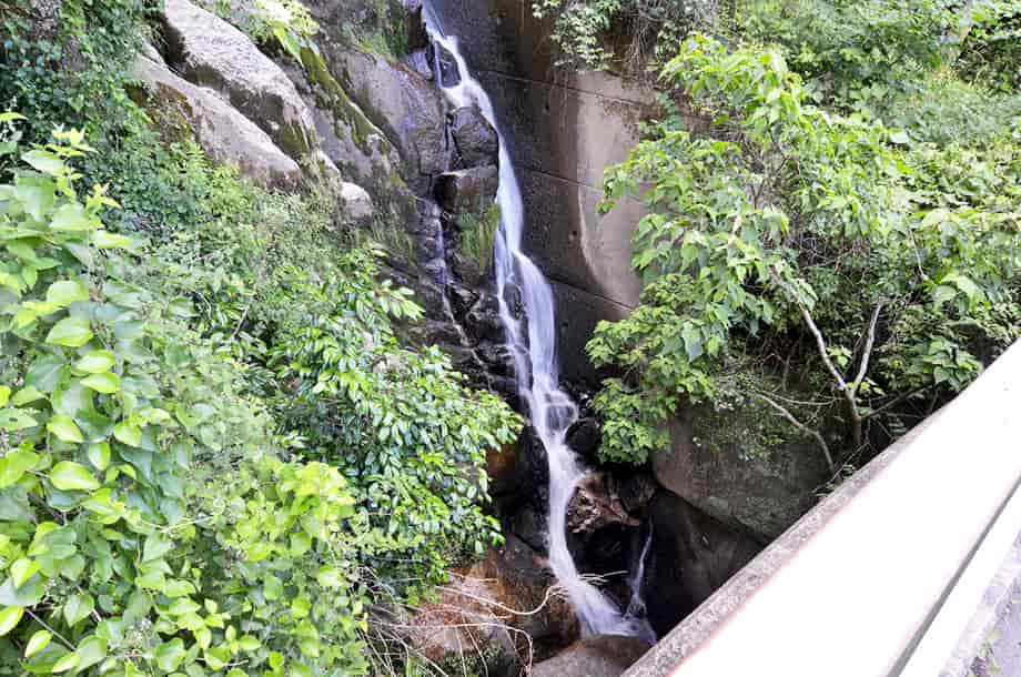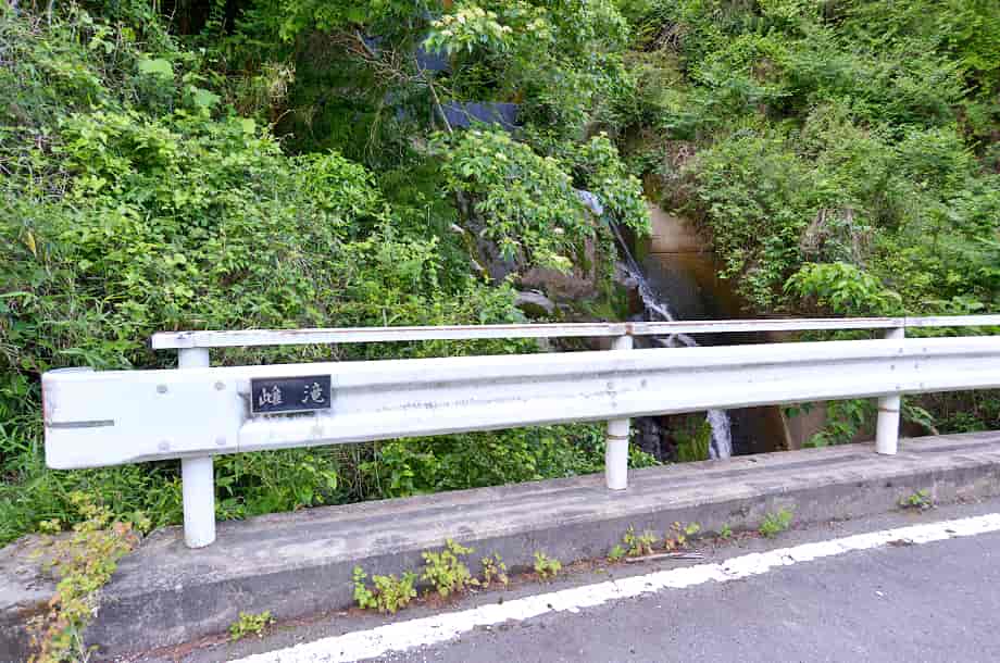 | ▲滝前の道路の様子 | ▲雌滝橋と雌滝 |