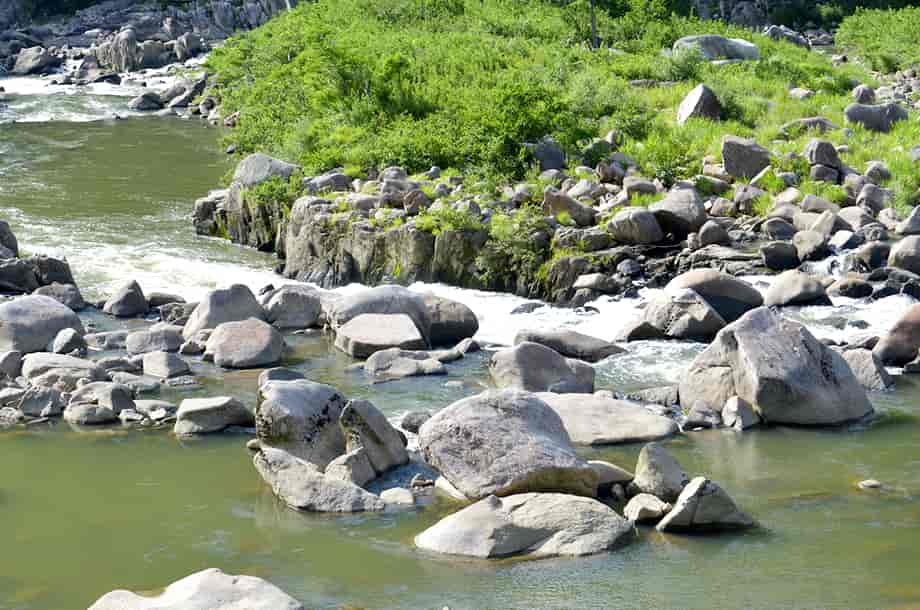 京都府南山城村にある「雌滝」は、南大河原地区を流れる木津川に流れ込んでいる。 道路横に流れ落ちている滝だが、20m程の落差はあるだろうか。 しかし、幾段かの段瀑になっているように見えるが、半ば造成されていて、上方部分は堰堤のようになっている。 これは残念な事だが、どうにか以前の様子を思い浮かべることができなくはない。 付近には「雄滝」があるが、落差は両滝とも同じほどだが、雌滝の流れは、ほぼひと筋になって水が流れ落ちている。 水量が多いと違った様子を現わすのだろうが、雄滝とは岩の様子も違っていて、両滝の対比がおもしろい。 また、雌滝も、道路が整備されていない頃には直接木津川に流れ込んでいたのだろうから、その落差も今よりもずっと大きかったのだろう。 付近の木津川は急流で難所になっているが、かつて川から見た雄滝・雌滝の両滝は、さぞかし見事なものであったと思う。 雌滝への交通・アクセス さて、雌滝へは、自動車の場合、奈良方面からの国道163号線からだと、笠置町から南山城村に入ってすぐの交差点を右折して、府道82号線へ進む。 この交差点には信号機はあるが、住所表示などはないので注意しないといけないが、手前には「府道82号線 →」の道路標識があり、そのすぐ先には「高山ダム・南山城村役場 →」などの案内標識もあるので、それに注意するとよい。 右折して府道82号線へ入ってからは、そのまま道なりに進んで行けばよいが、村役場を過ぎた先の交差点は右折する。 この交差点には信号機があり、手前には「150m 高山ダム 4km →」の案内標識がある。 右折して少し行くと大河原大橋を渡るようになるが、橋を渡った先は左折して、あとは道なりに走って行く。 道路は木津川沿いに延びているが、大河原大橋を渡ってから2〜3分程で「雌滝橋」を渡るようになる。 雌滝はこの橋の右側にあり、すぐ横の斜面から流れ落ちていて、滝の右付近には名板も立てられている。 ただ、雌滝橋は道路のように見えて分かりづらいので、大河原大橋を渡ってからは、道路右側の斜面に注意しながら進んで行くとよい。 また、付近には自動車を止めることができるほどの場所はないので、やや先にある「明神の滝」の説明版があるところまで走って行った方がよい。 雌滝から雄滝を越えて少し進むと、道路左に「明神の滝」の説明版があるので、その辺りが広くなっているので駐車することができる。 自動車はここに止めて引き返す方が、自動車の往来を気にせず、ゆっくりと見ることができる。 雌滝までは、歩いて引き返しても7〜8分程なので、雄滝や明神の滝も見るつもりで、この説明版辺りに駐車した方がよい。 |