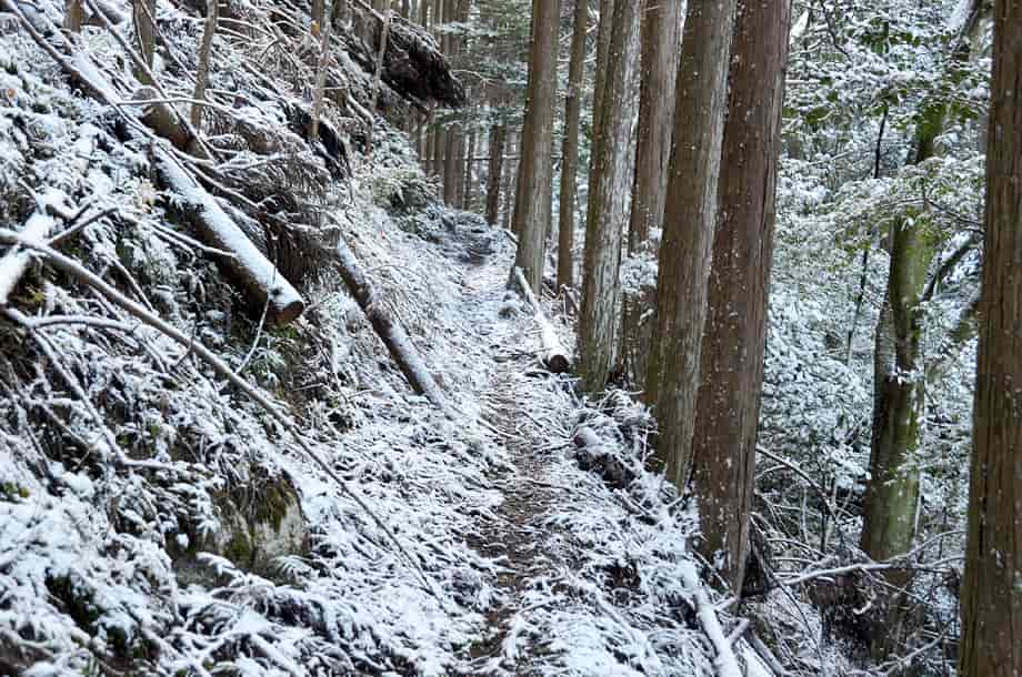 | ▲対岸に渡ってからの山道の様子 | ▲滝上への山道の様子 |