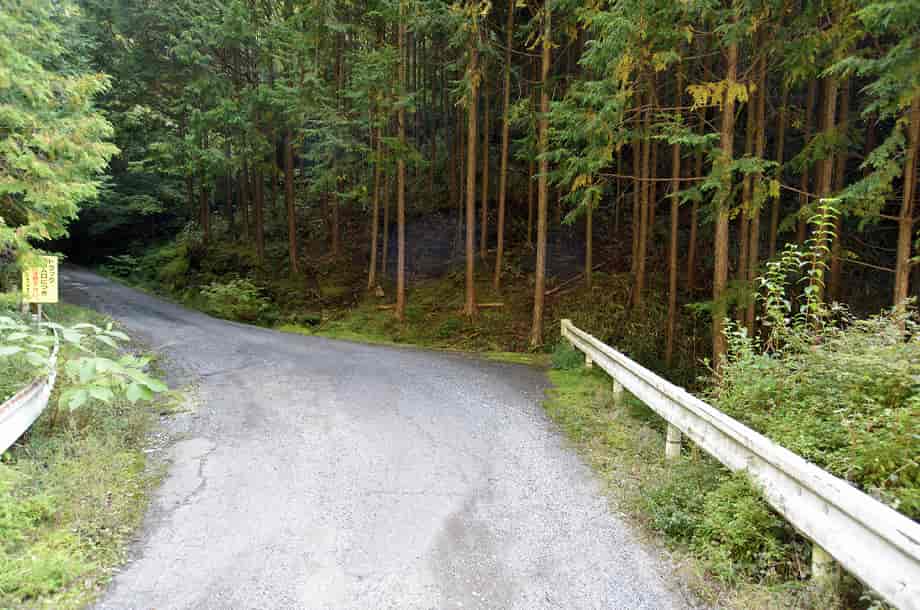 | ▲滝への入り口となるカーブ・梯子滝の方向から見ている | ▲滝への入り口となる尾根の様な斜面 |