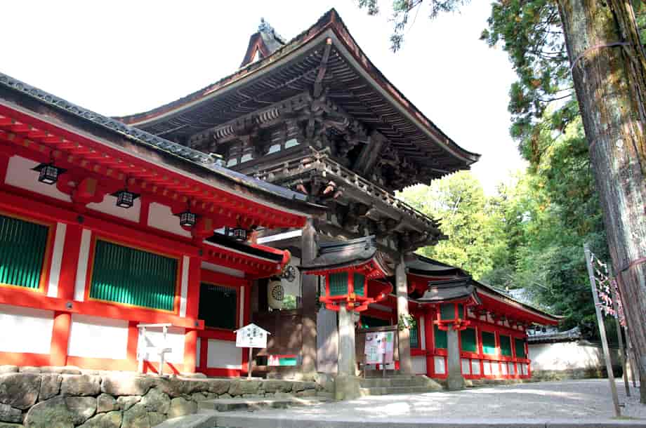 | ▲滝前からの様子 | ▲付近にある石上神宮 |