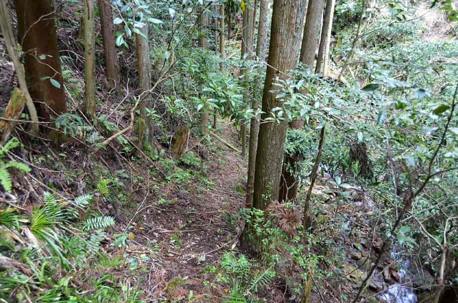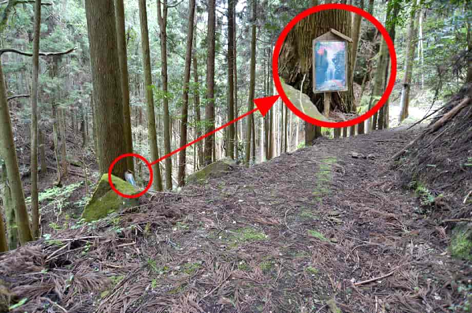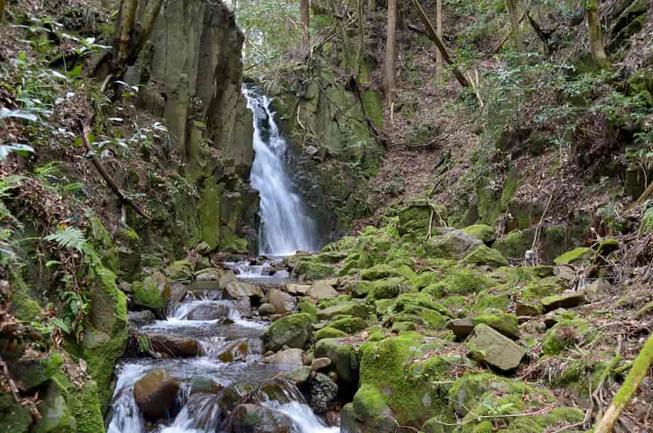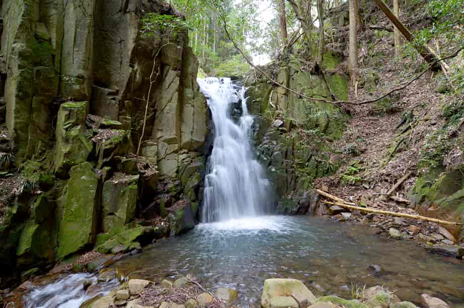 奈良県宇陀市にある「鎌倉の滝」は、室生三本松地区を流れる宇陀川支流の仮屋川に流れ落ちている。 同地区には「青葉の滝」もあるが、どちらも様子が違っていておもしろい。 鎌倉の滝は落差5m程の直瀑だが、粗い岩肌なので、水が落ちる様子には変化がある。 また、大きい滝ではないが、滝前が開けているので清々しい滝でもある。 鎌倉の滝は林道を少し降りて来れば遠望できるが、遠目で見ても趣がある。 奥まったところにあるが、苔が生えた岩や滝までの沢の様子にも風情があり、奥行きも感じられる。 また、滝の右側の岩肌には不動尊らしい石仏が彫られているので、信仰の滝であることも分かる。 滝の前には人工的な石組みのような跡や石板なども見られるので、ここには祭壇のようなものや祠などが建てられていたのかもしれない。 滝壺の広さなどを見ても、かつては行場の滝にもなっていたのだろう。 今は林道が脇に通っているが、かつては寂しいところでもあり、修行の場として厳しいところであったのかもしれない。 ところで、「鎌倉の滝」とは珍しい名前だが、鎌倉時代に第五代執権・北条時頼がこの地を訪れたことが由来と言われている。 当時は執権のことを「鎌倉様」などと呼んでいたのだろうと思ったりするが、その時代にこのようなところに執権が訪れることなどは稀有なことだろうから、周辺の人たちはさぞかし驚いたことだろう。 それ以来、この滝のことを「鎌倉の滝」と呼んでいるのだろうが、執権・時頼もきっとこの滝を愛でたことであろうと思う。 鎌倉の滝への交通・アクセス さて、鎌倉の滝へは、自動車の場合、近鉄大阪線・三本松駅付近などを目指せば分かりやすい。 自動車で、国道165号線を榛原方面から三本松方面へ向かって走っていくと、「室生寺入口」の交差点がある。 ここを過ぎてしばらくすると、「やまなみロード・室生寺 →」と書かれた道路標識があり、その先はやまなみロードの高架が通っている。 高架を潜ってすぐの分岐を右へ曲がると、後戻りするように道が伸びていて、その先は突き当りになっている。 この突き当りの交差点を「名阪国道・小倉IC」の方へ向かって右折する。 右折した道は「やまなみロード」で、しばらくは道なりに走っていく。 やがて、仮屋川を渡る「横谷橋」があり、その橋を渡った先に右への分岐がある。 道路左には、小さいながらも「三本松 →」との案内標識が立てられているので、それにも注意するとよい。 ここを右へ曲がると、半ば後戻りするようになるが、少し行くと右へ下る脇道がある。 ここまで、国道の分岐から5~6分程で、脇道との分岐には「元三(鎌倉)」の案内標識が立てられているので、ここを右の道に入っていく。 また、先ほどの国道との分岐をそのまま進むと、道路左にカーブミラーが縦にふたつ設置されているところがある。 ここから、道が後戻りするような上り坂があるが、この道は旧初瀬街道で、この道を進んで行っても同じところに着く。 ただ、こちらの道は細くて走りづらいこともあるので、やまなみロードからの方が分かりやすいように思う。 また、旧初瀬街道を通っても、時間は同じほどかかる。 ところで、右の道を入っていくと、ほどなく墓地があるが、自動車はこの手前に駐車することができる。 ここからは墓地の前の道を歩いて行くが、道は舗装されているが、半ば地道のようになところもある。 しかし、はっきりとしている道で、時折整備もされているようで、歩きやすい。 道なりに歩いて行くと、やがて小さな橋を渡って林道になる。 林道に入ってしばらく行くと、左側に「鎌倉の滝」と書かれた写真表示の案内板がある。 鎌倉の滝へは、ここから脇道に入っていくが、この案内板は、この時には倒れていて、岩陰になっていたこともあり、見落としてしまい、やや行き過ぎてしまった。 行き過ぎた辺りは、左の斜面の様子が倒木などで荒れているので、そのような様子があれば行き過ぎている。 滝へは、案内板のところから斜面を降りていくが、道は所謂山道といった感じだが、距離も短くはっきりとしているので特に問題はない。 沢へ降りると対岸に渡らなければならないが、対岸に渡ると鎌倉の滝を遠望できる。 ただ、沢は岩伝いに渡渉することができるが、水量が多い時には長靴などが必要かもしれない。 渡渉してしまえば滝前まではすぐで、辺りは開けているので気持ちがいい。 駐車場から滝前まで15~20分程度で、林道を含め、道は整備されていて歩きやすい。 |