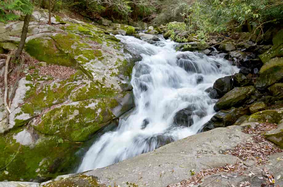奈良県宇陀市にある「小原の滝」は、小原地区を流れる笠間川に流れ落ちている。 落差7mの段瀑で、道路脇から見ることができる。 しかし、滝前へは岩を降りていかなければならないが、思ったよりも急で、段差も大きい。 下流側から沢へ降りることもできるのかもしれないが、付近には降りれそうなところがなかったようなので、この時は、落ち口となる大きな岩の上から見るにとどめておいた。 それでも、水の流れはおもしろく、上流側から大きく弧を描くように流れ落ちている。 この時は水量も多い方なのだろうか、勢いのある流れも力強い。 滝前から見るといっそう迫力のある様子を捉えることができるのだろうが、岩は滑りそうでもあるので、降りる場合は、ロープなどを用意しておいた方がよい。 ところで、小原の滝の降り口のところは広場になっているが、以前は駐車場になっていたようだ。 不法投棄などが多いのか、現在はフェンスが張られていて進入禁止になっている。 しかし、向かいには名前を彫った石の標柱もあり、駐車場内にはベンチも設置されている。 川沿いには桜の木も植えられているので、以前はちょっとした観光名所にもなっていたのだろう。 この時はゴミなどは見られず、滝上からでも面白い流れが見えるので、このままにしておくのは残念なようにも思う。 小原の滝への交通・アクセス さて、小原の滝へは、自動車の場合、国道25号線(名阪国道)・針インターからだと、インターを降りて、少し先の「針インター西」の交差点を「吉野・榛原・室生」方面へ向かって左折する。 左折した道は国道369号線で、しばらくは道なりに進んで行く。 やがて「白石」の交差点があるので、ここを左折して県道781号線へ入る。 左折してからの道は細くなるので、離合する場合などは注意が必要だが、舗装もされているので、特に問題はない。 やがて道も広くなって走りやすくなるので、道なりに県道781号線を走って行く。 途中に「← 小原」の道路標識があるが、ここもそのまま直進して県道781号線を進んでいく。 道なりに走っていくと、「新滝の尾橋」の右角に「←小原・滝之尾 →」などと書かれた道路標識があるので、これを過ぎてから少し先の道路右手に閉鎖されている駐車場がある。 この辺りには道路左側に歩道が設けられていて、向こうには「やまなみロード」の高架が見える。 ここまで針インターから10~15分程度で、閉鎖された駐車場の向かい辺りには「小原の滝」と彫られた石柱が立てられていて、滝へは駐車場のところから入っていく。 自動車は、手前にあった案内板がある新滝の尾橋の向かいが広場になっているので、その辺りに駐車することができる。 滝へは、駐車場にあるガードレールが切れているところから入っていくが、すぐに滝上に着く。 但し、滝下へは岩を降りることになるが、滑りやすいので、降りる場合は、ロープなどを用意しておいた方がよい。 また、周辺には「鎌倉の滝」や「青葉の滝」などがあるので、時間があれば足を延ばしてみるのもよい。 |