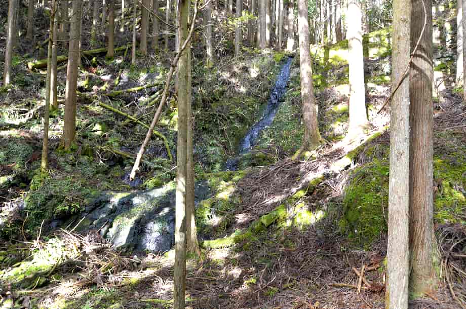 | ▲途中にある分岐・ここは左へ進む | ▲林道途中にある小滝 |