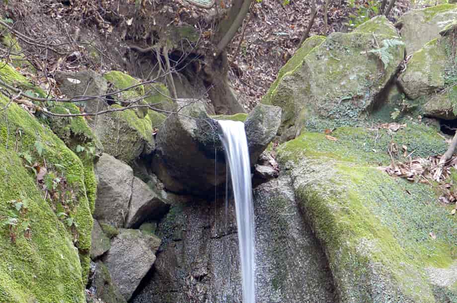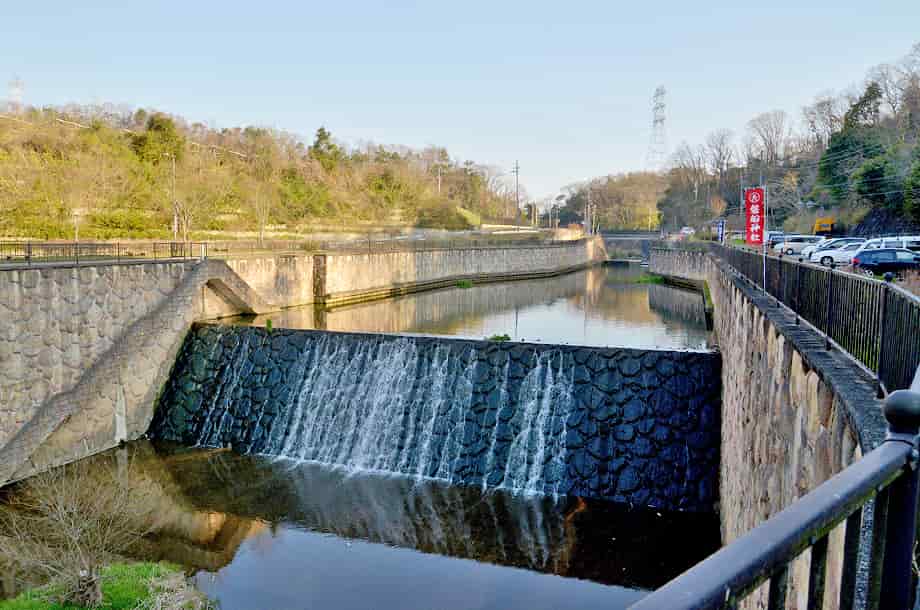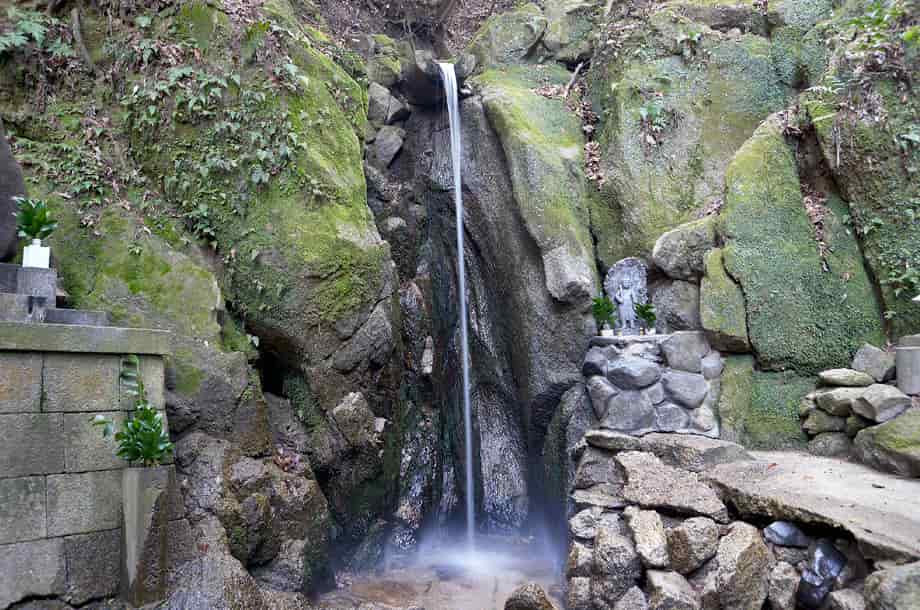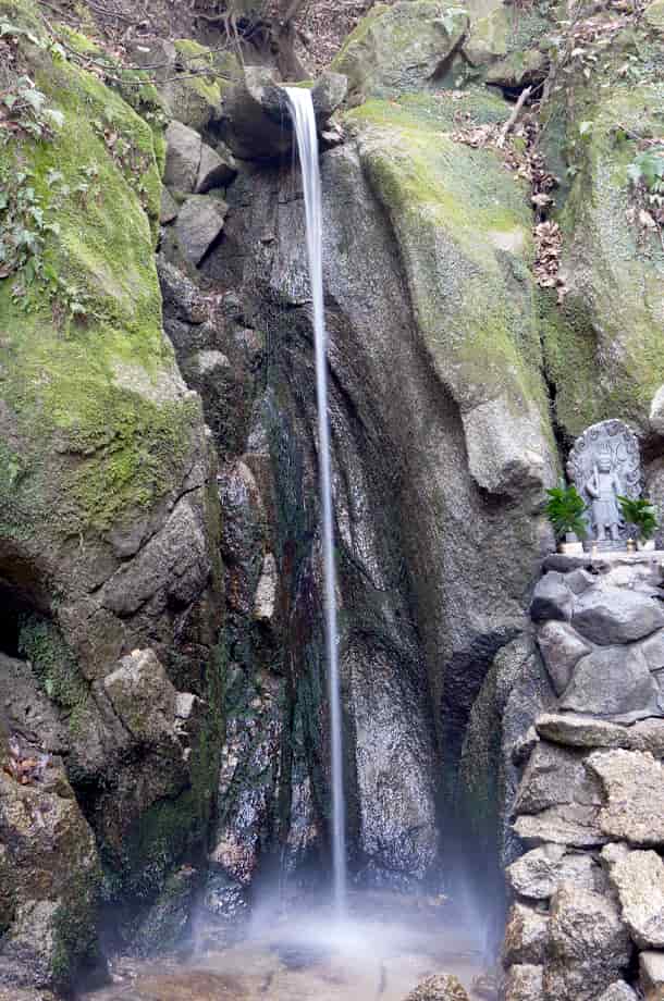 大阪府交野市にある「磐船の滝」は、私市地区を流れる天野川の枝沢に流れ落ちている。 修行の滝になっていて、滝近くには、不動尊のほか、白竜大神などと彫られた石碑が建てられている。 落差は3~4m程だろうか、まったくの打たせ滝で、落ち口はV字になった石造りの樋が差し出されている。 しかし、滝が流れ落ちる岩は深く削られていて、自然の様子は残している。 辺りはよく整備されていて、更衣所となるような建物もあるので、現在も滝行が行われているのだろう。 また、磐船の滝付近の天野川は河川改修がなされ、かつての景観をとどめていないが、この滝付近はそれほど変わっていないようで、閑静な様子が窺える。 ところで、磐船の滝のすぐ近くには磐船神社があるが、この神社の御神体は大きな岩になっていて、この岩の前に拝殿が建てられている。 本殿が見られない神社で、古い形式を残している神社でもあるので、時間があれば参拝してみるのもよい。 また、境内には川が流れていて、巨石が続く渓谷のようになっていて「岩窟めぐり」と呼ばれている。 しかし、そこに入るのは複数の人数でないと入れないため、この時は入山していない。 これは、以前に一人で入山した方が事故にあったからだそうで、仕方がないことではある。 但し、入山するには入山料が必要。 尚、磐船の滝は、滝近くに不動尊や白竜大神が祀られていることから、「不動の滝」、「白竜の滝」などとも紹介されている。 磐船の滝への交通・アクセス さて、磐船の滝へは、近くにある磐船神社を目指せばよいが、自動車の場合、国道168号線から入って行くことになる。 枚方方面からだと、国道168号線を南へ向かうと「磐船隧道」を抜けた先に「新磐船トンネル」がある。 この新磐船トンネル手前に三差路があるので、ここを右折する。 信号機などはないが、分岐の右向かいのところに「磐船神社 →」の案内標識が立てられている。 右折するとすぐに橋を渡り、その先の道は左へ曲がるようになる。 この道が曲がる途中で、赤い鳥居が右側に見えるので、滝はその奥に流れ落ちている。 生駒方面から国道168号線を北へ向かう場合、道路左に「四交クリーンセンター →」と書かれた標識があるので、この標識のところを左へ曲がる。 この分岐の手前辺りから、道路の左に「磐船神社」と染められた赤い幟が何本か見えるので、それにも注意するとよい。 左折すると、すぐに休憩所やトイレが設置されている河川公園と、その先に駐車場があるので、自動車はここに駐車することができる。 ここから歩いても5分程度だが、参拝を兼ねて磐船神社の駐車場を利用してもよいかもしれない。 |