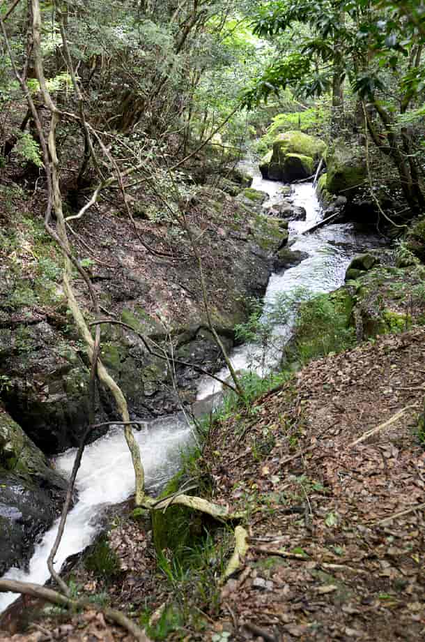 | ▲岩を削るように流れる上方部分 | ▲上から見た下流側の様子 |