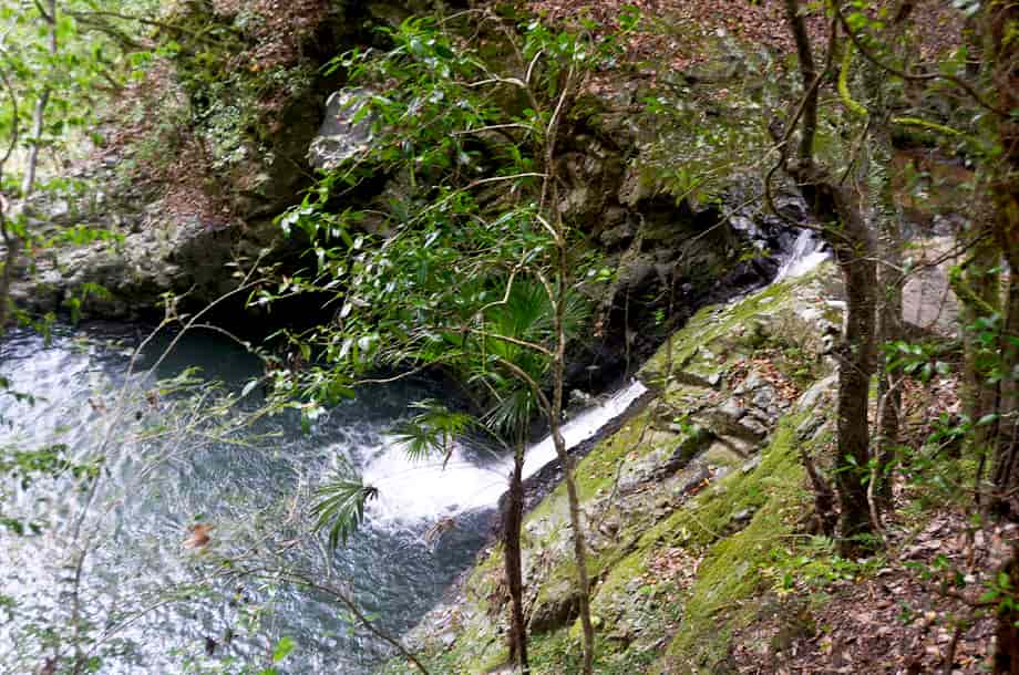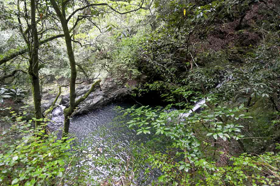| ▲下段の滝と周辺の様子 | ▲付近にあるもうひとつの入り口 |