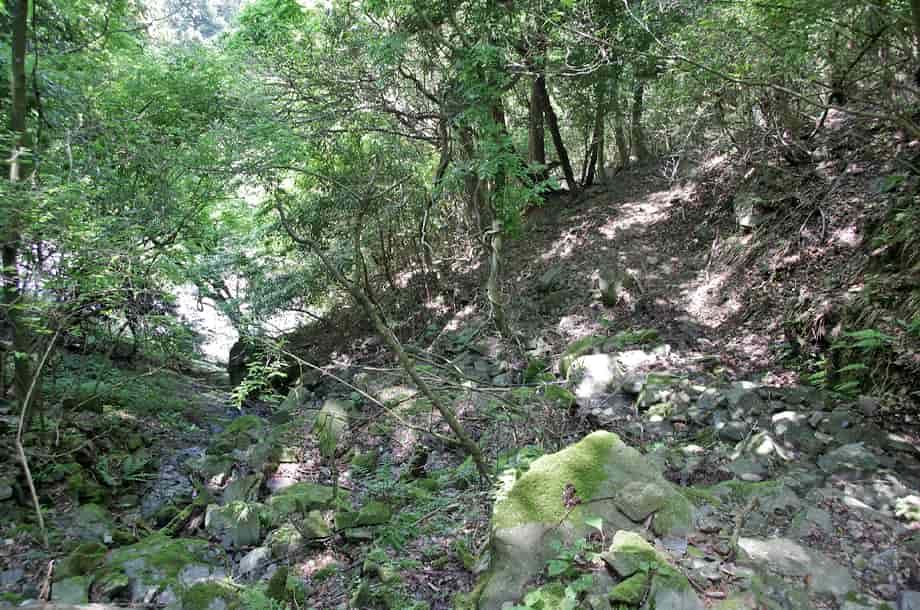 | ▲山道からの眺め | ▲下流側から眺める上方部分 |
