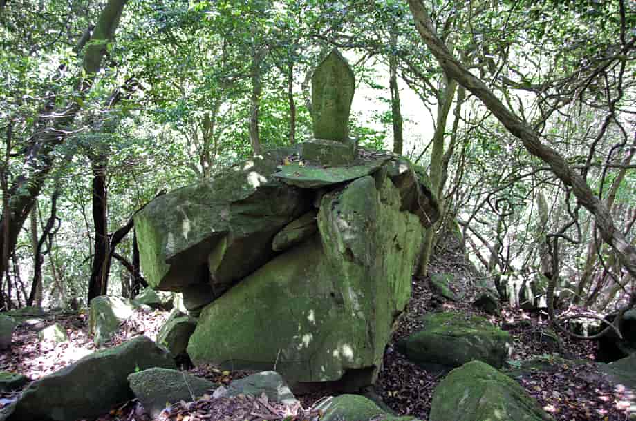 | ▲山道の様子 | ▲沢への降り口にある石仏 |